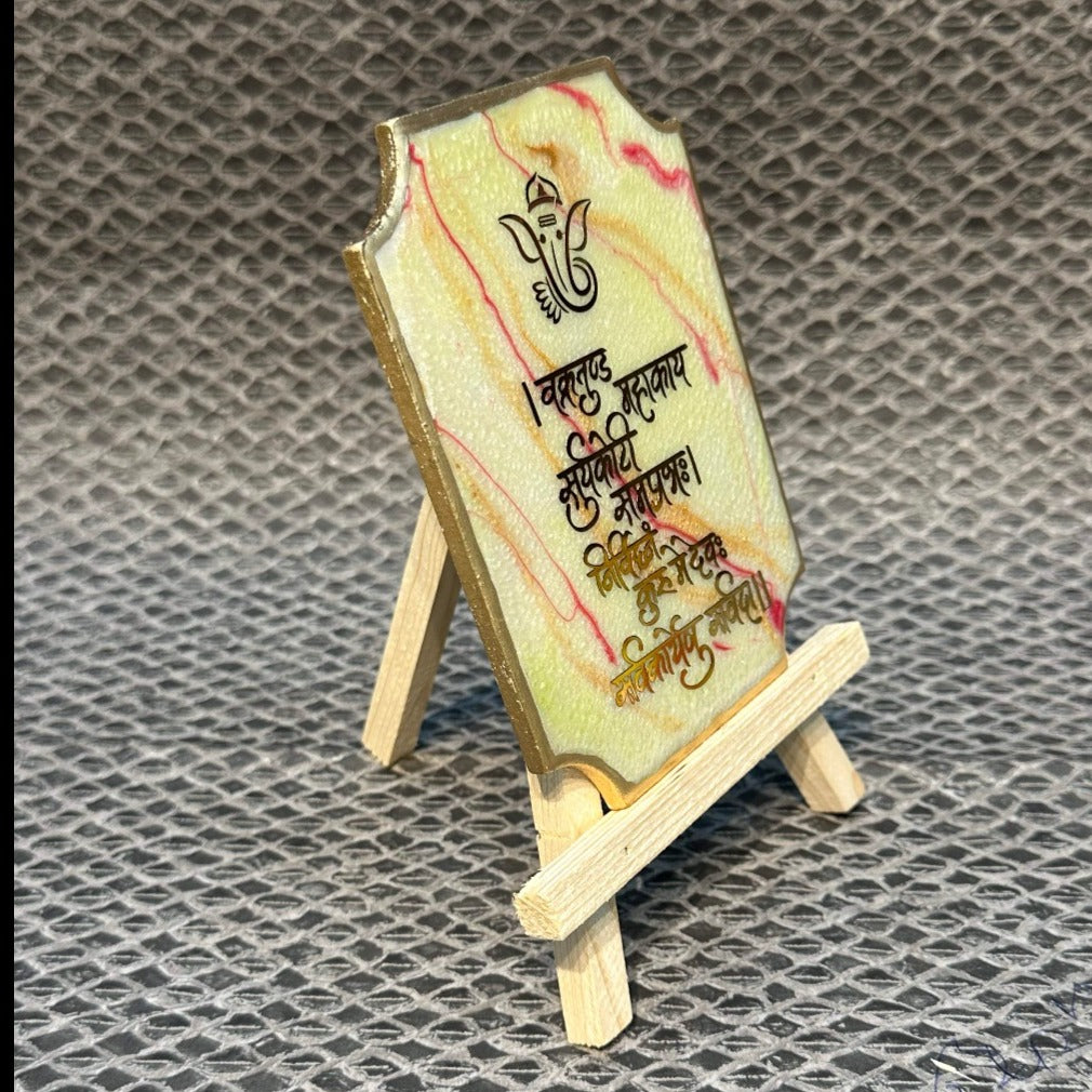 Decorative Ganesha Mantra Frame With Stand Made With Epoxy (Green)