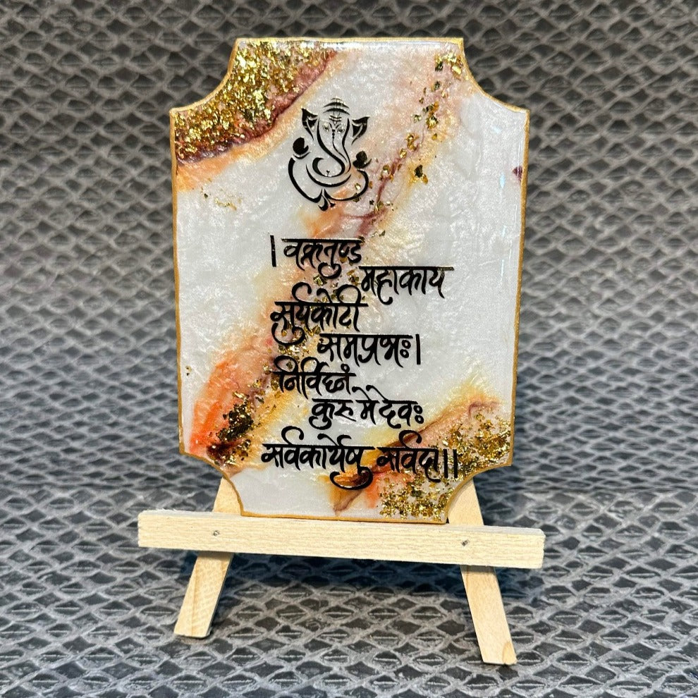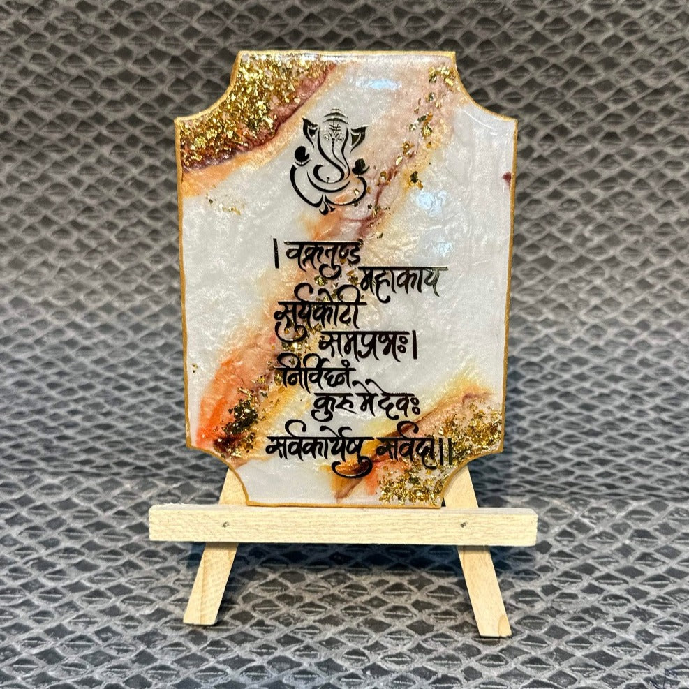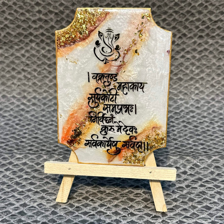 Decorative Ganesha Mantra Frame With Stand Made With Epoxy (White)
