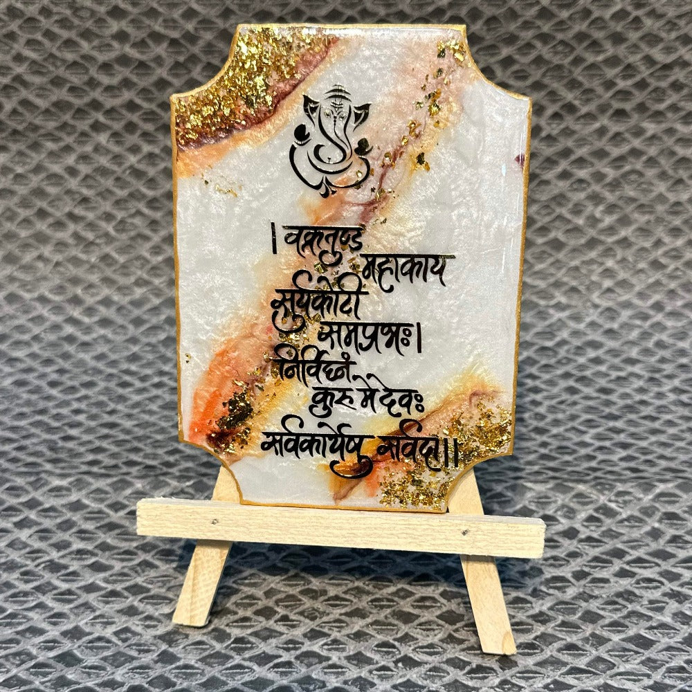• Item Name: Decorative Ganesha Mantra Frame With Stand Made With Epoxy (White)
