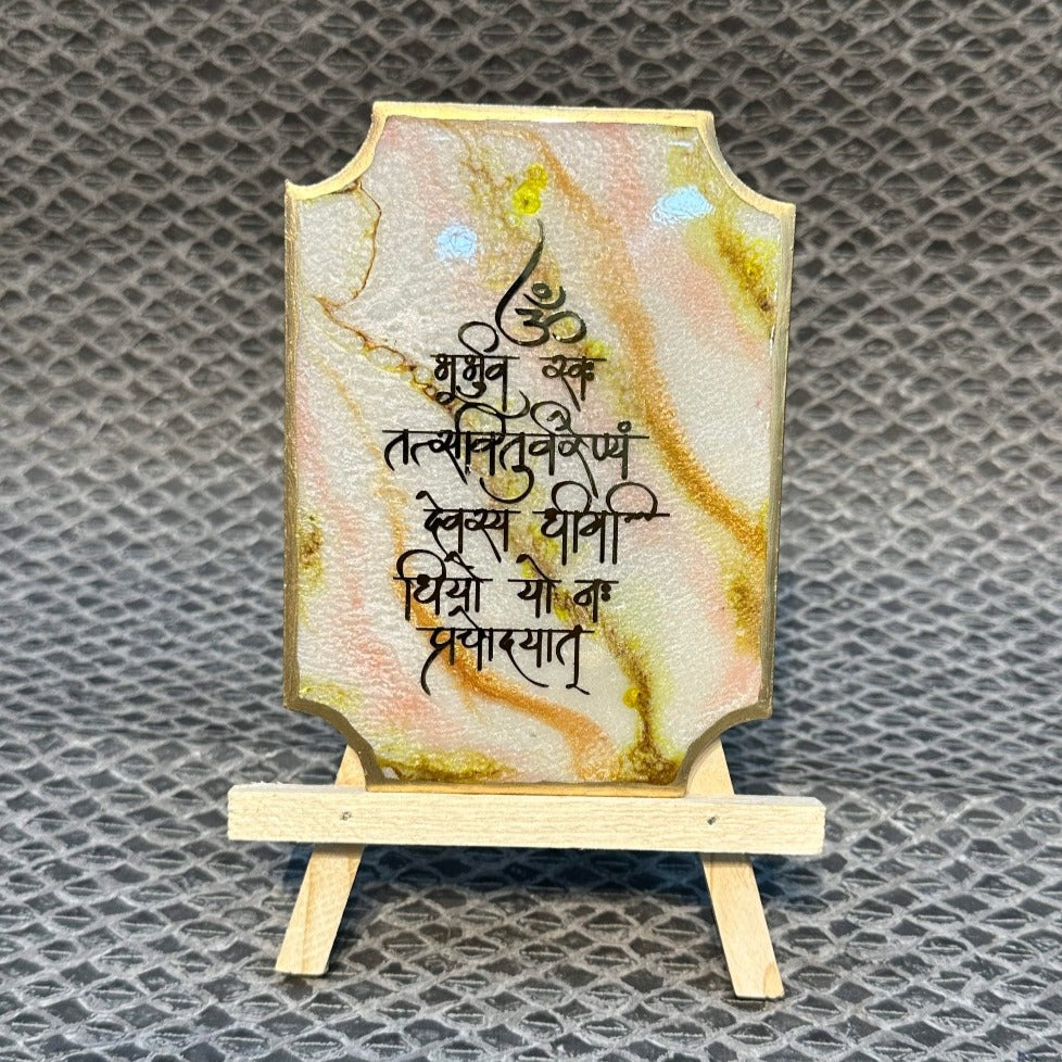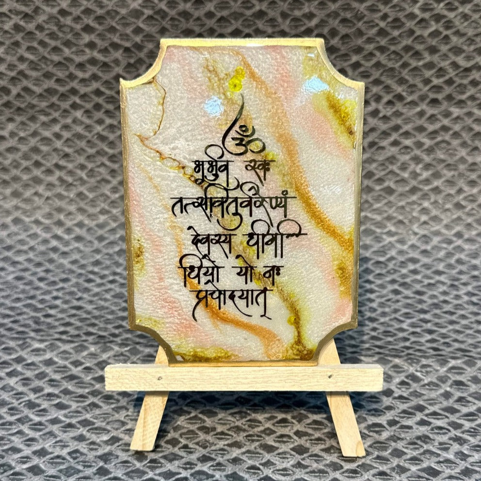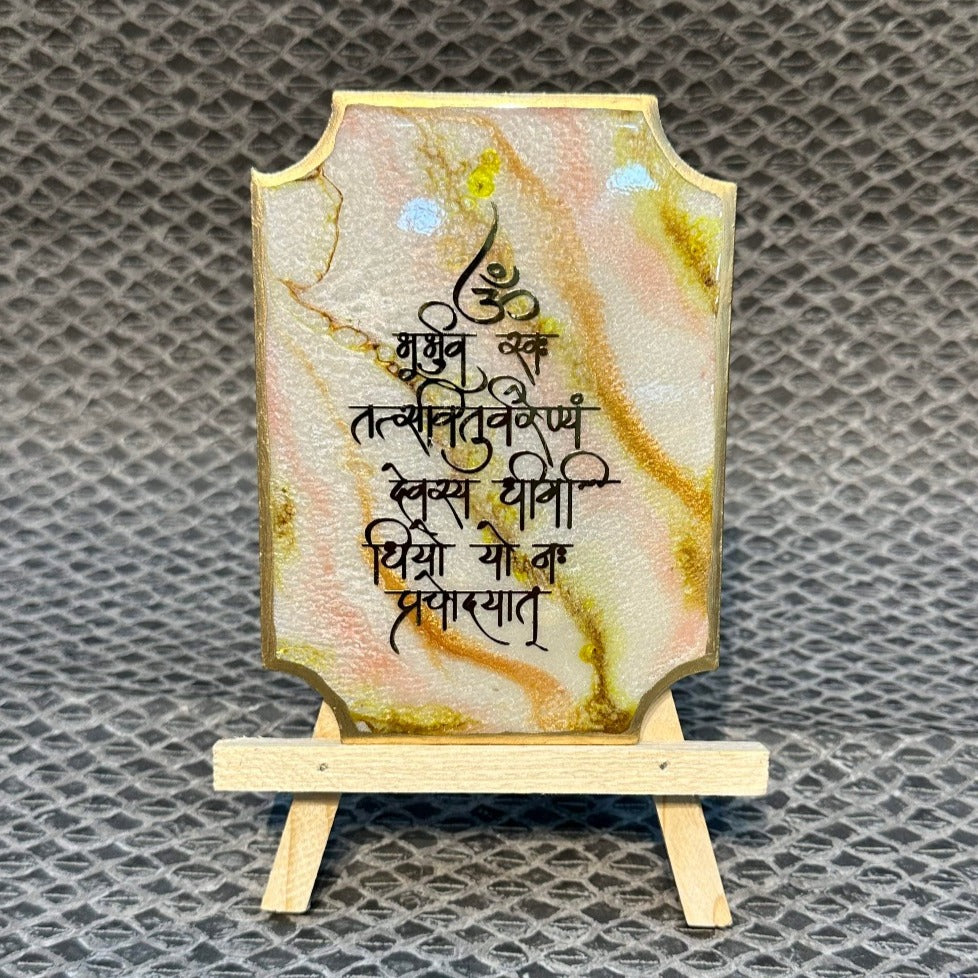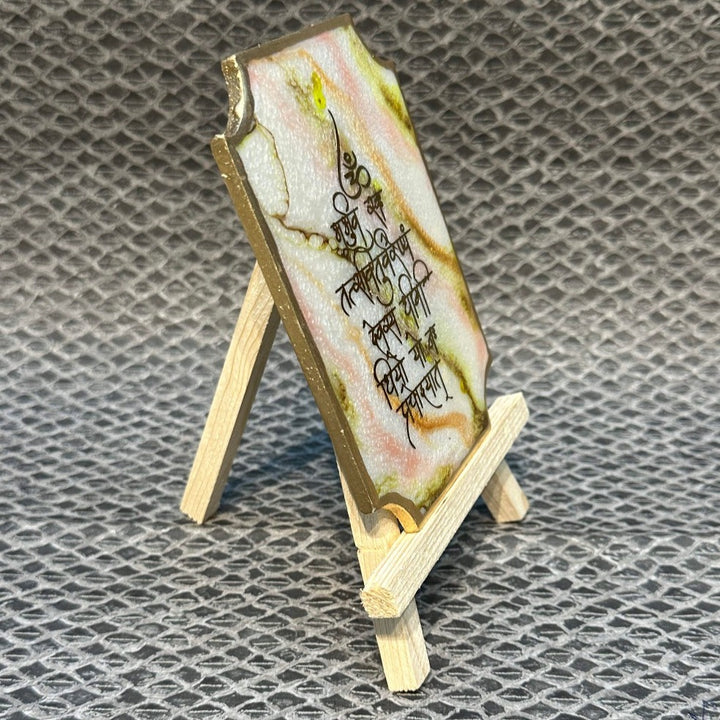 Decorative Gayatri Mantra Frame With Stand Made With Epoxy (Green)