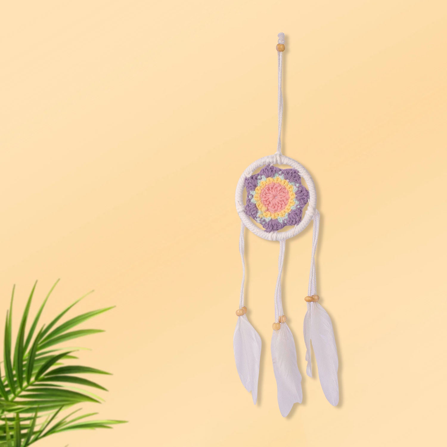 Handmade Wall Decor with Nature Feather Charms (Round Shape)