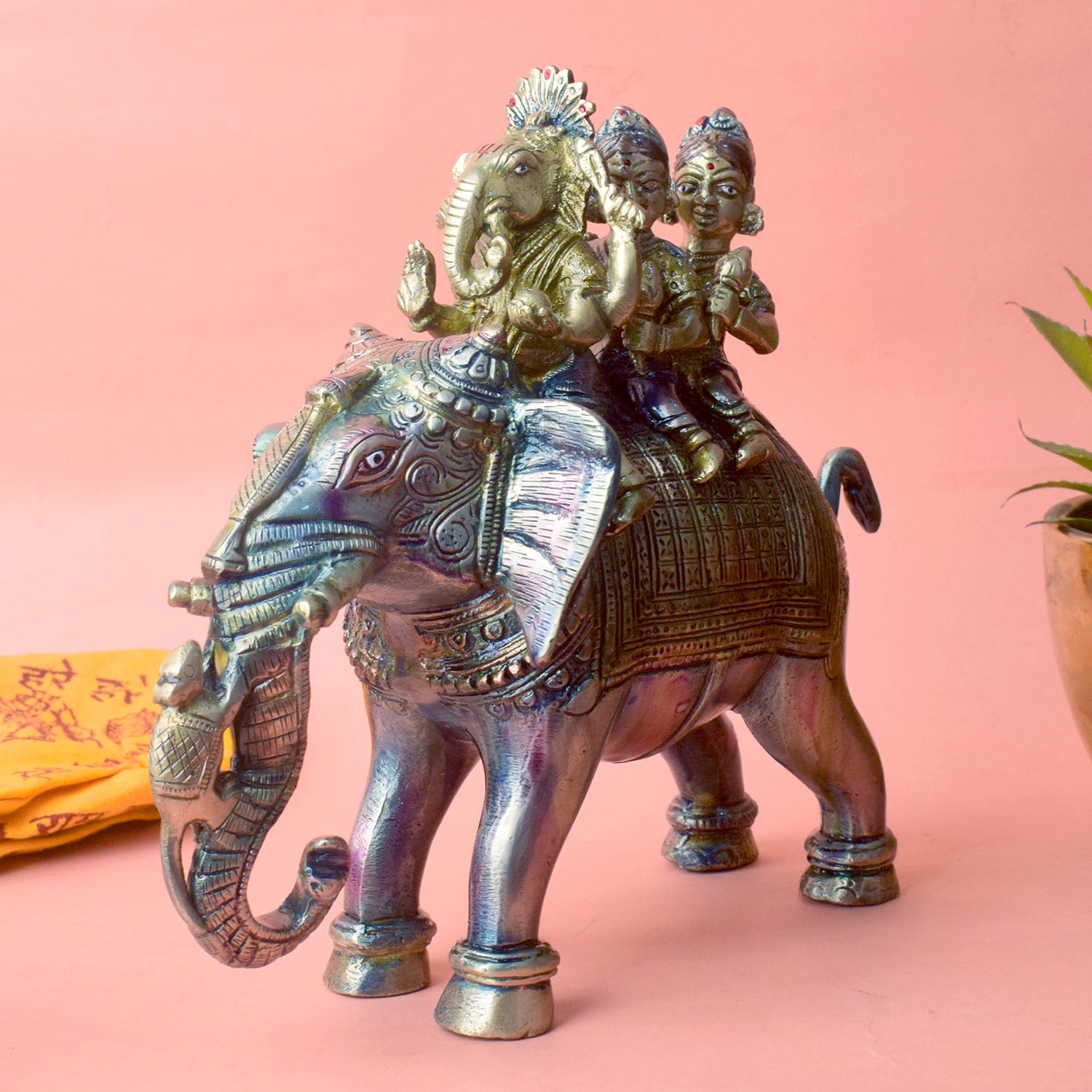 • Product Name: Brass Lord Ganesh Sitting On A Elephant Riding With Riddhi And Siddhi