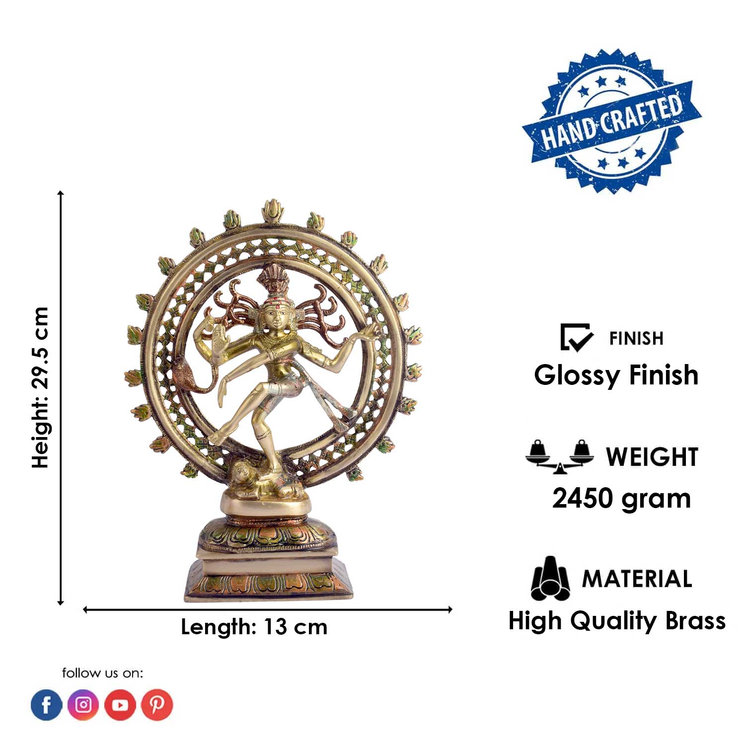 • Material: Natraj Murti is made from High-Quality aluminum Material