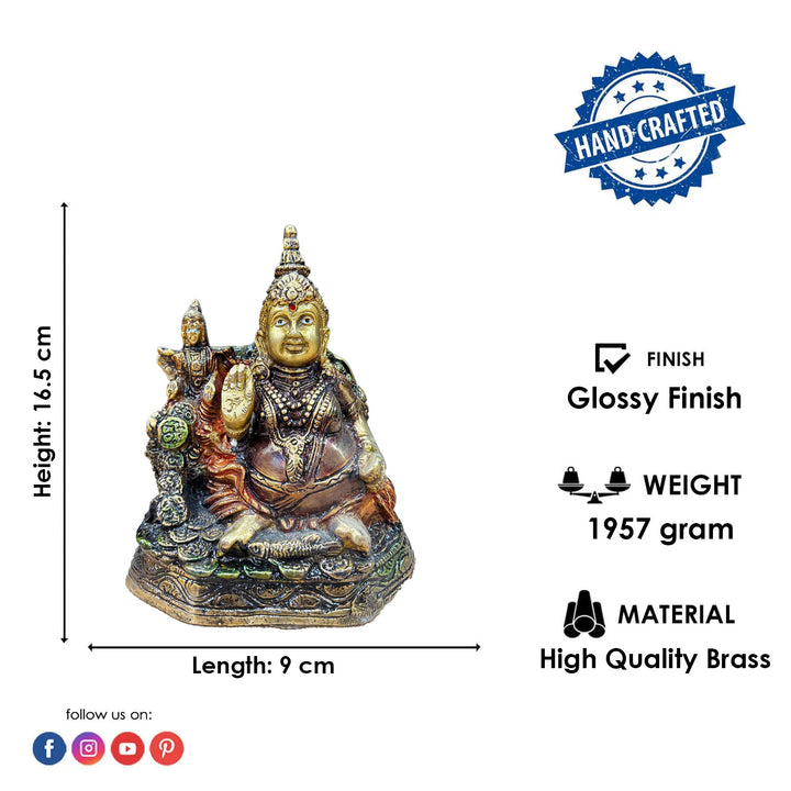Brass Lord Kuber Idol | Lord Kuber Brass Idol with Laxmi Ji | Handcrafted Kuber Laxmi Idol | Primeum Brass Idol | Brass Kuber and Laxmi Statue | Exclusive Brass Idol | Best Gift Item for Housewarming |Β Β