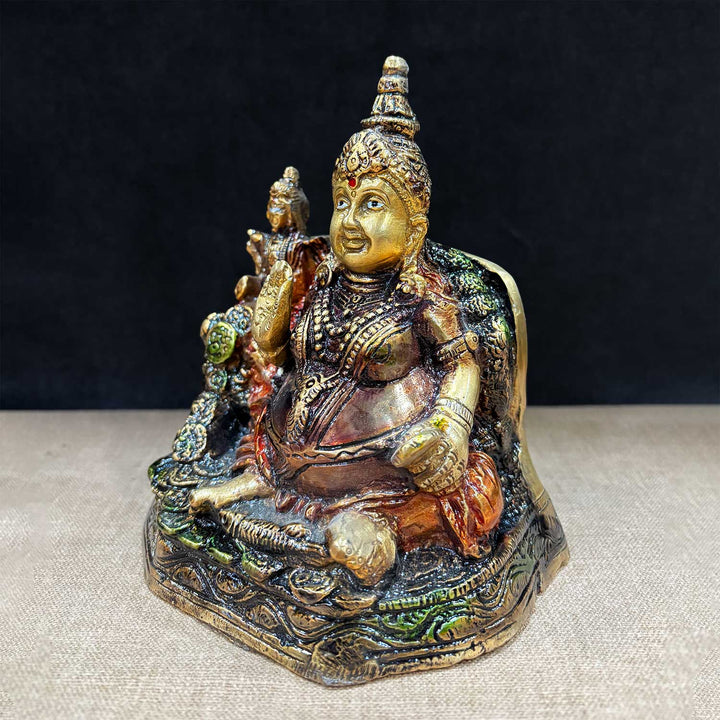 About Product: This stunning brass idol of Goddess Laxmi and Lord Kuber features an intricate design in a rich golden tone, exuding elegance and charm. Known as the deity of wealth and the king of the semi-divine Yakshas in Hindu culture, Lord Kuber is believed to bring abundance and prosperity, just like Goddess Laxmi, the symbol of fortune and affluence. This beautiful idol is perfect for enhancing the aesthetic of your pooja room or living space while inviting prosperity into your home. It also makes an excellent gift choice for occasions such as Diwali, weddings, anniversaries, and housewarming celebrations, combining spiritual significance with timeless artistry.