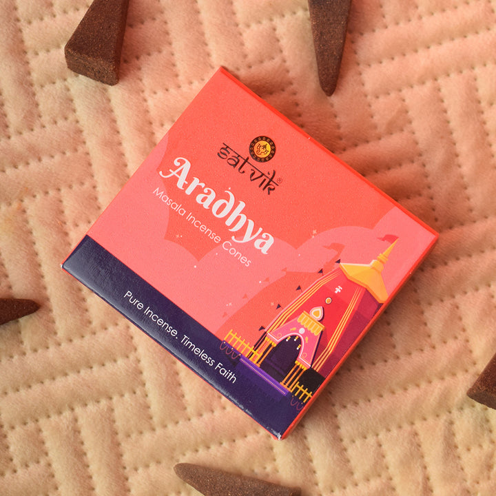Aradhya incense cones | Pure masala incense cones | Handcrafted dhoop cones | Natural masala incense cones | Spiritual incense cones | Aradhya cones for pooja | Meditation incense cones | Herbal incense cones | Devotional dhoop cones | Premium masala incense cones