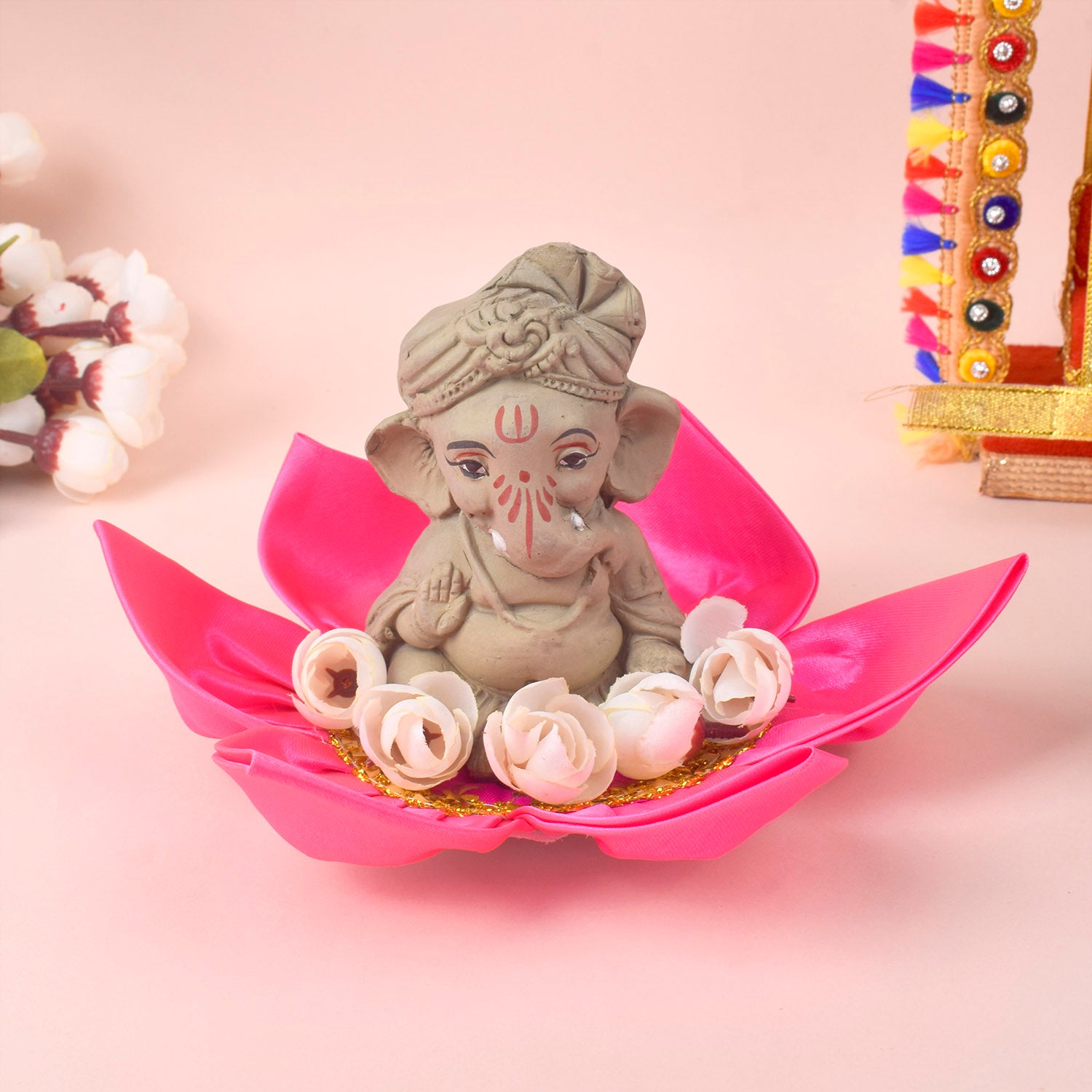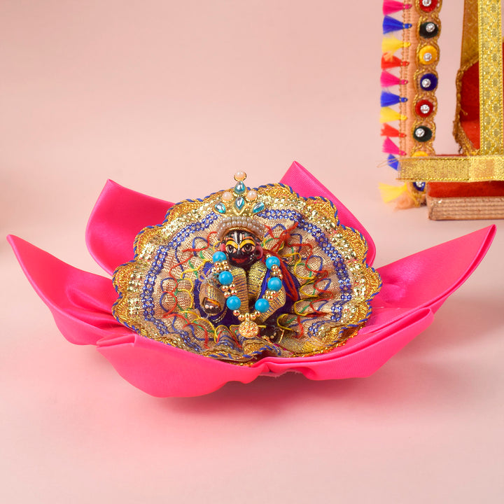 9.6 Inch Beautiful Satin Lotus Aasan for Home Temple
