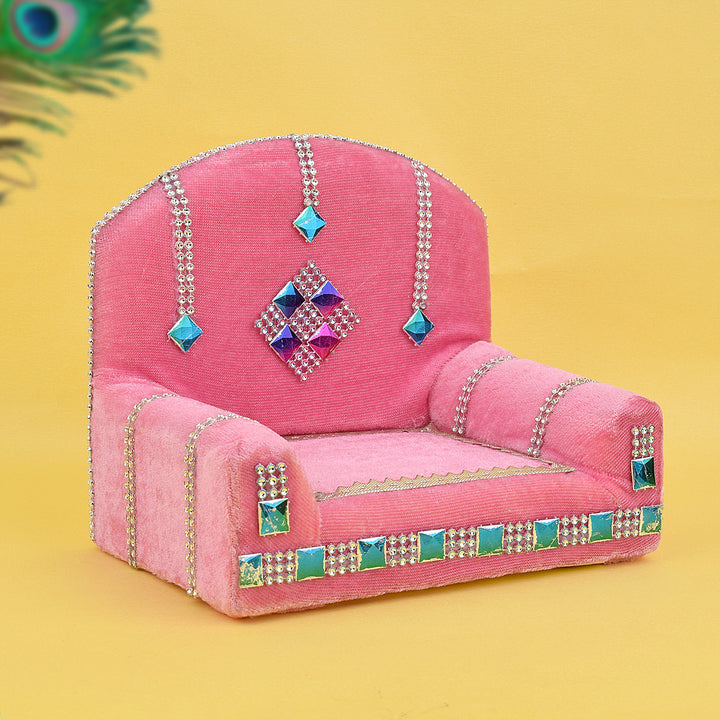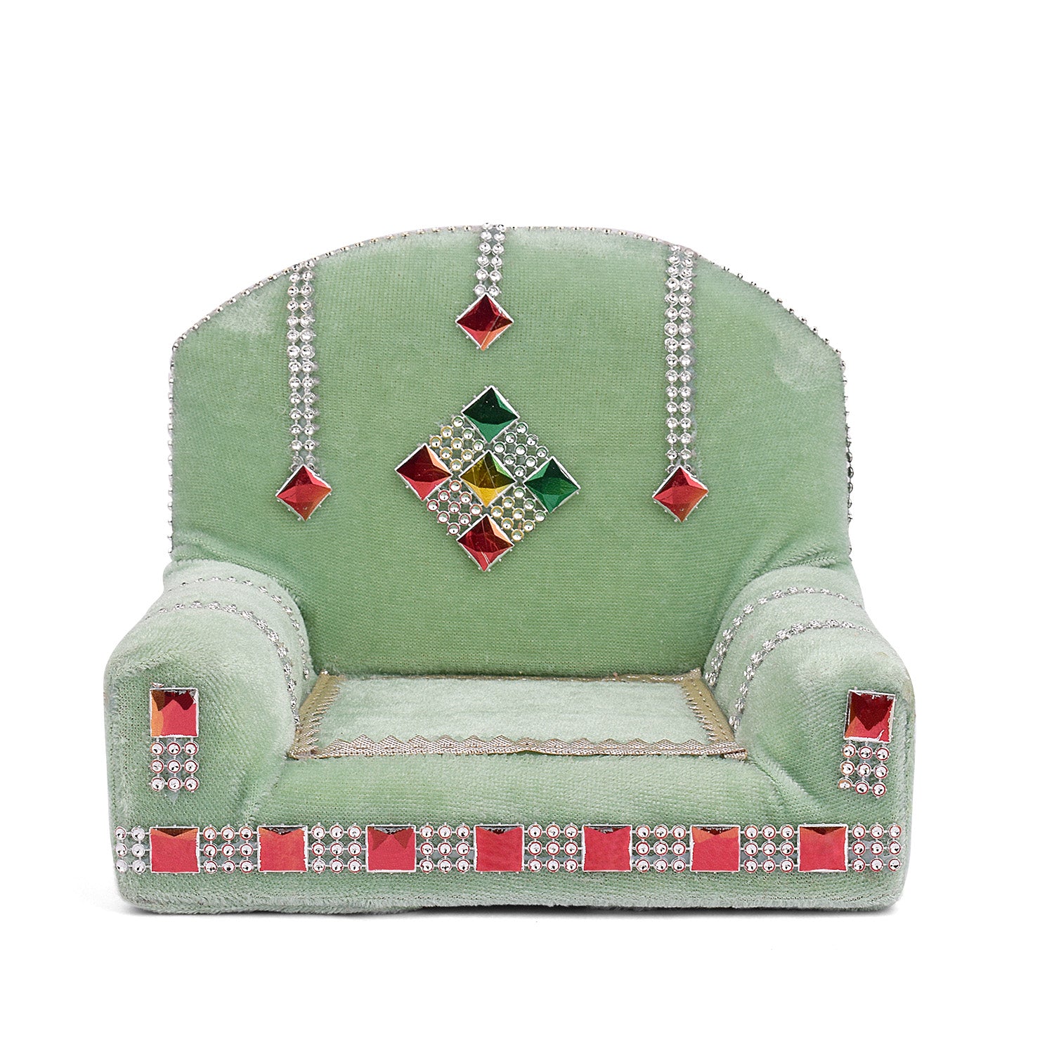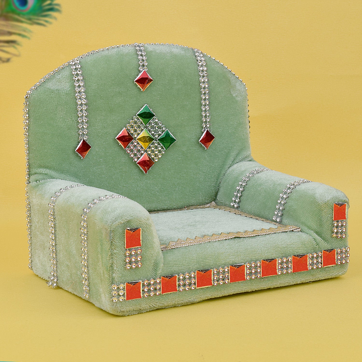 As you place your Laddu Gopal on this sacred throne, watch as the velvet embraces the little lord, showering blessings and grace upon your home. Its charming allure and captivating design make it a true centerpiece of devotion, adding a touch of splendor to your worship space.