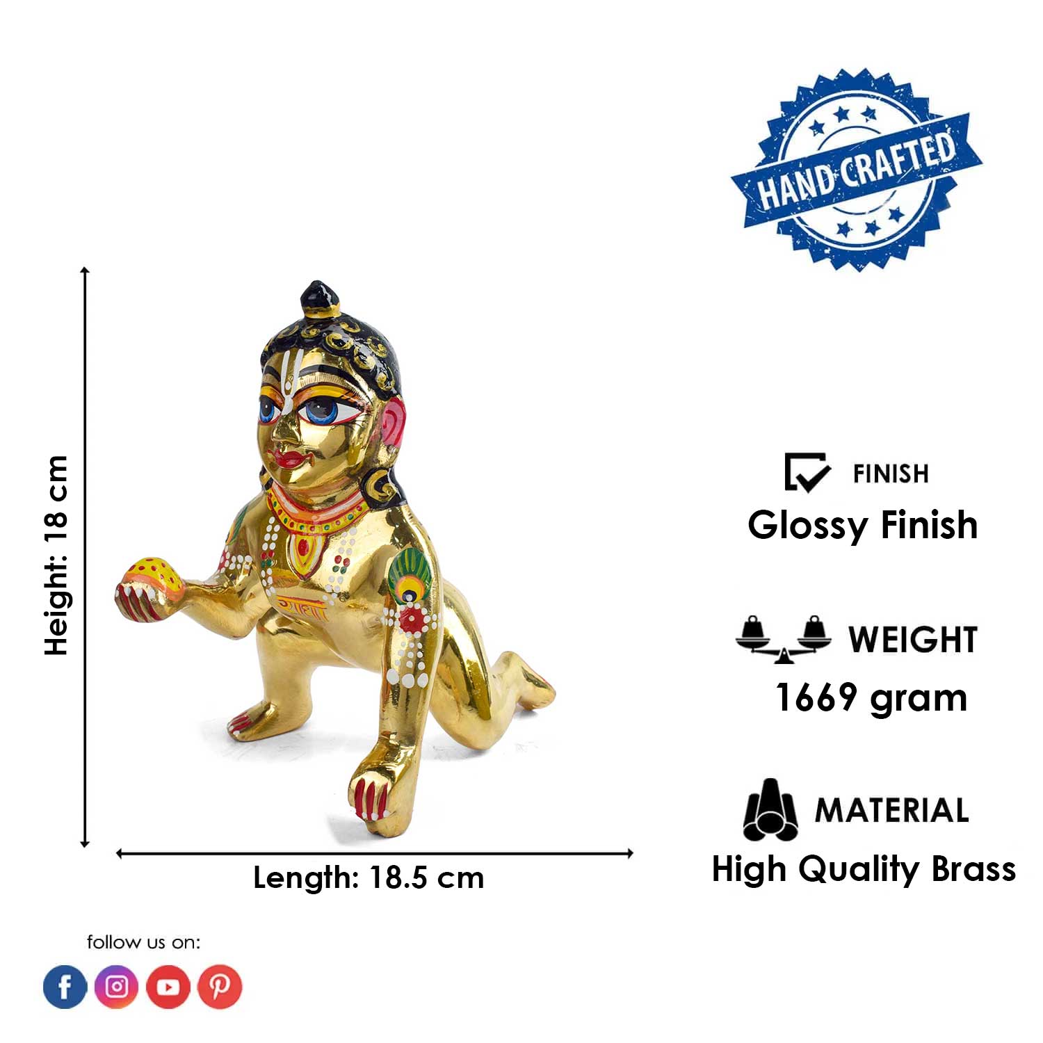 Material: The Laddu Gopal Idol is made from High Quality Brass Material.