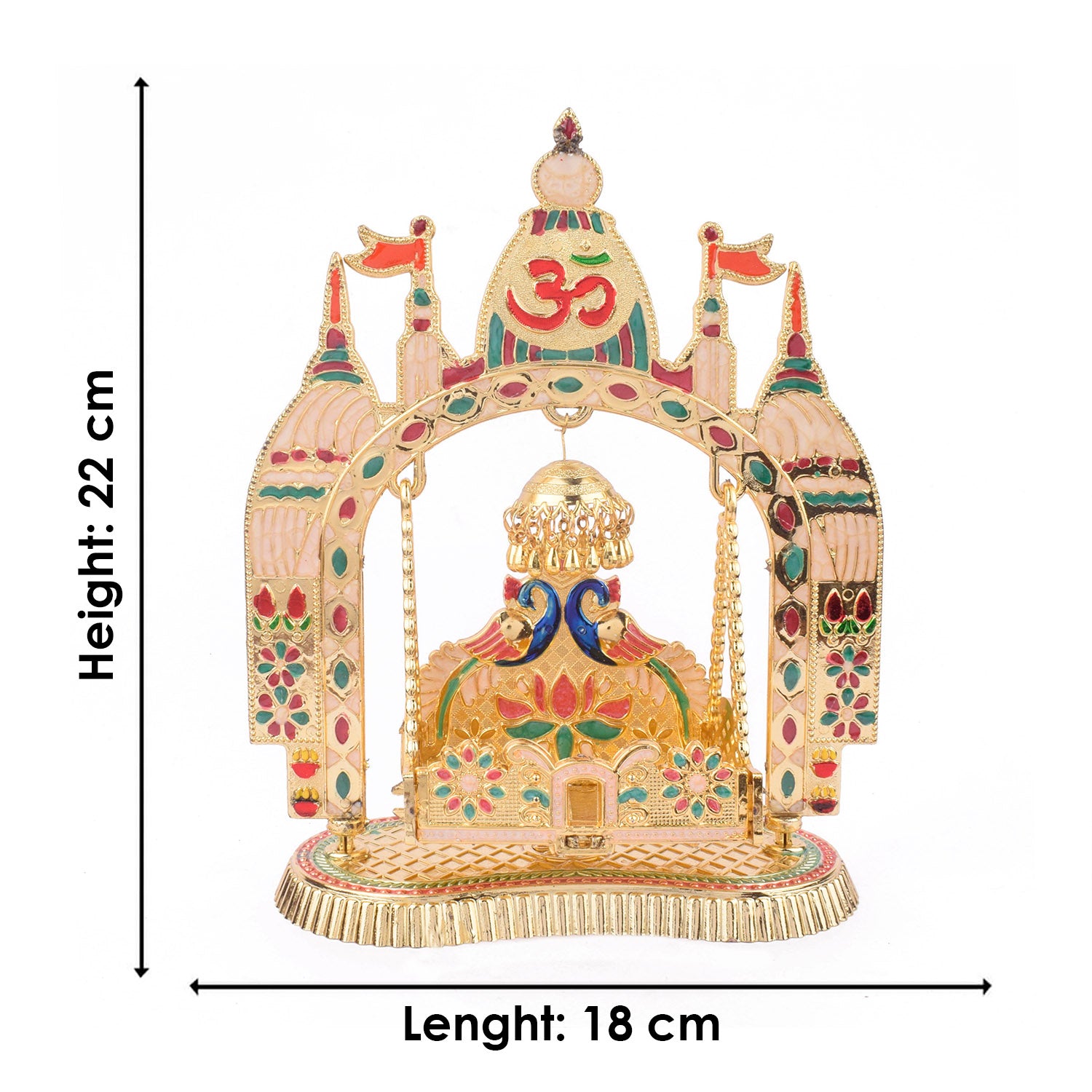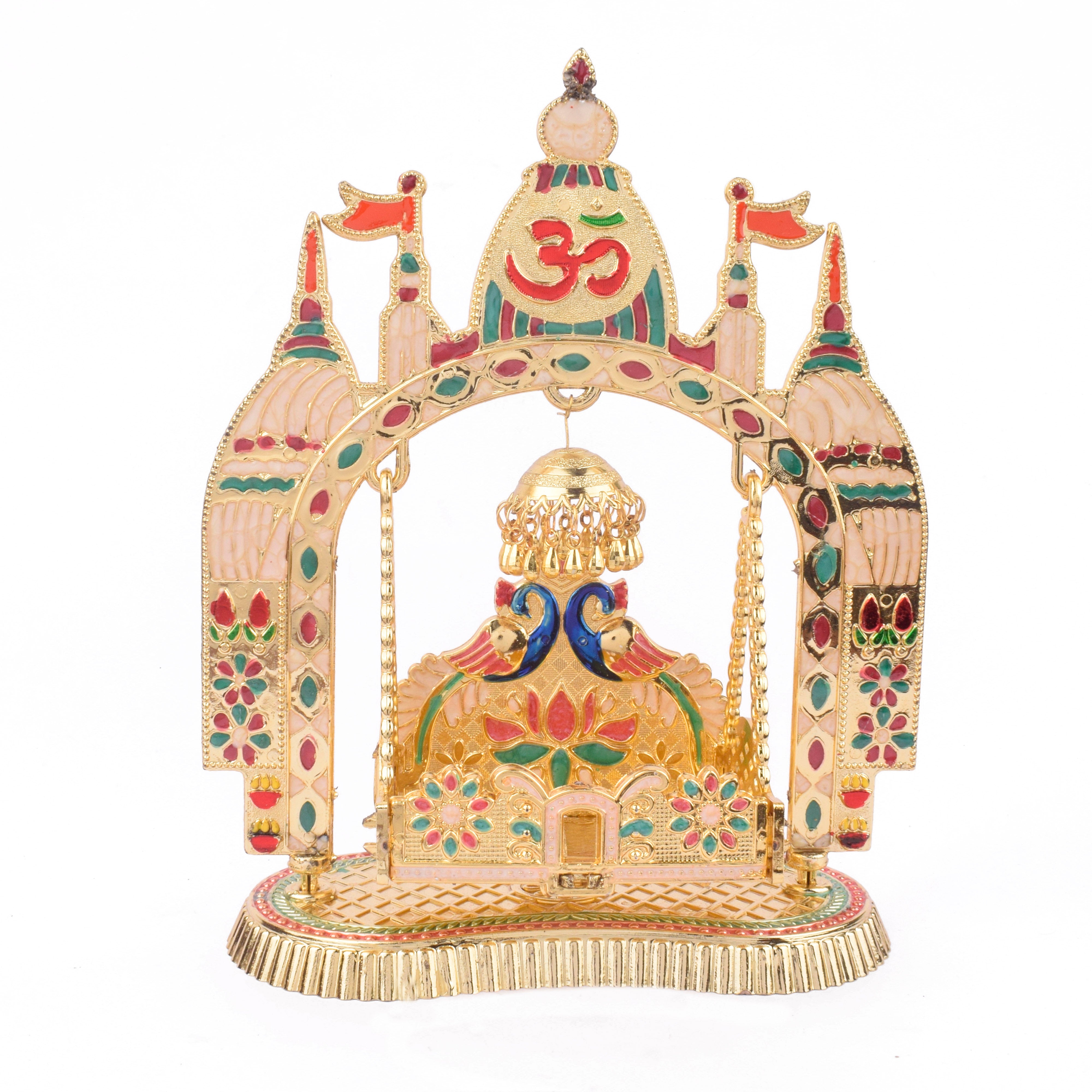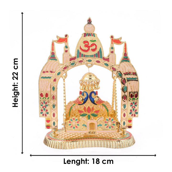 Item Name: Charming Temple-Style Jhula for Laddu Gopal – Golden Finish