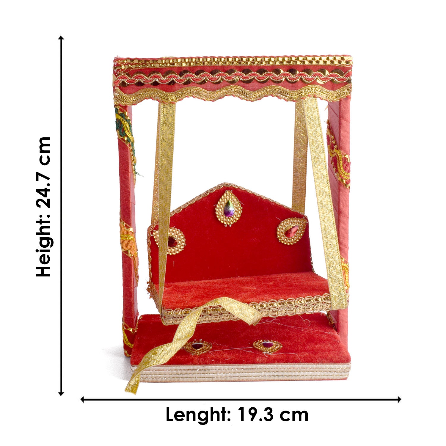 Lovingly handcrafted by skilled artisans from West Bengal and Uttar Pradesh, each size is perfectly tailored to suit different Laddu Gopal idols. Whether used in home mandirs, temples, or for gifting, this jhula adds a festive charm and devotional energy to every setting.