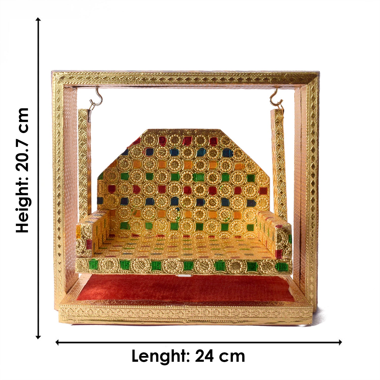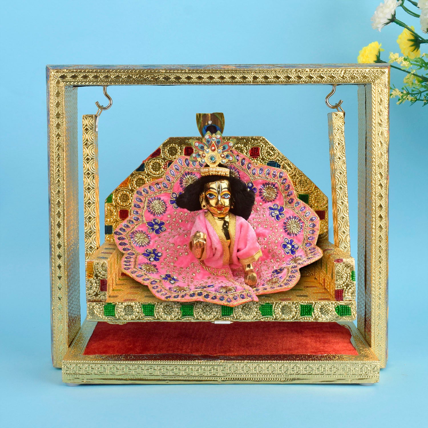 Ideal for temples, homes, or gifting to devotees, this Jhula represents sacred artistry and divine elegance.