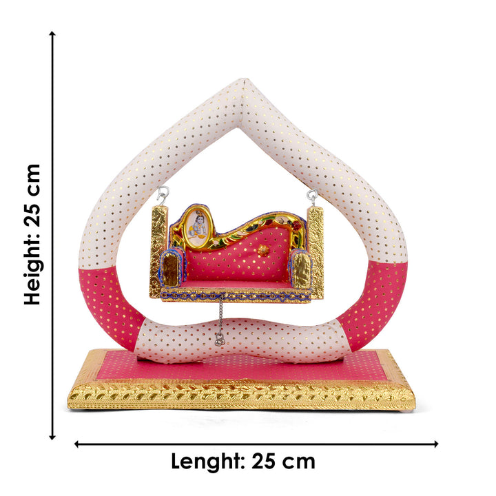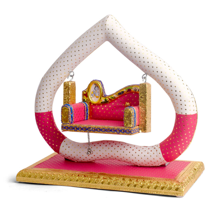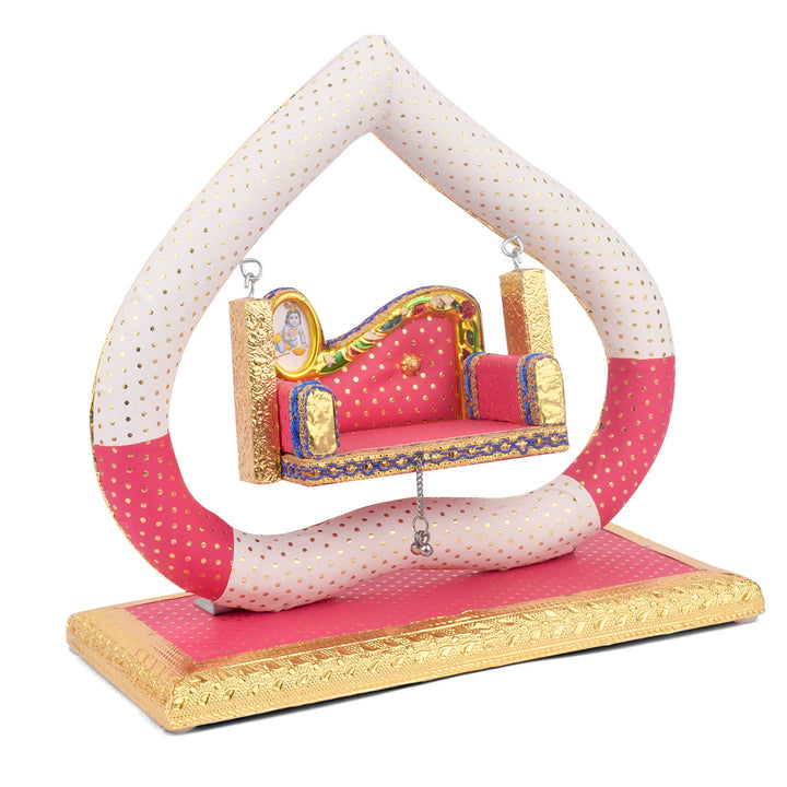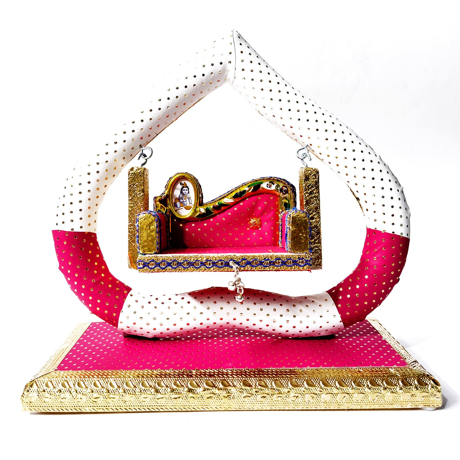 Lovingly handcrafted by skilled artisans from West Bengal and Uttar Pradesh, this jhula is more than just a decorative itemβ€”it is a symbol of devotion. Its detailed craftsmanship and balanced structure make it suitable for homes, mandirs, and festival pandals. A perfect blend of tradition and simplicity, it brings spiritual grace to any pooja setup.