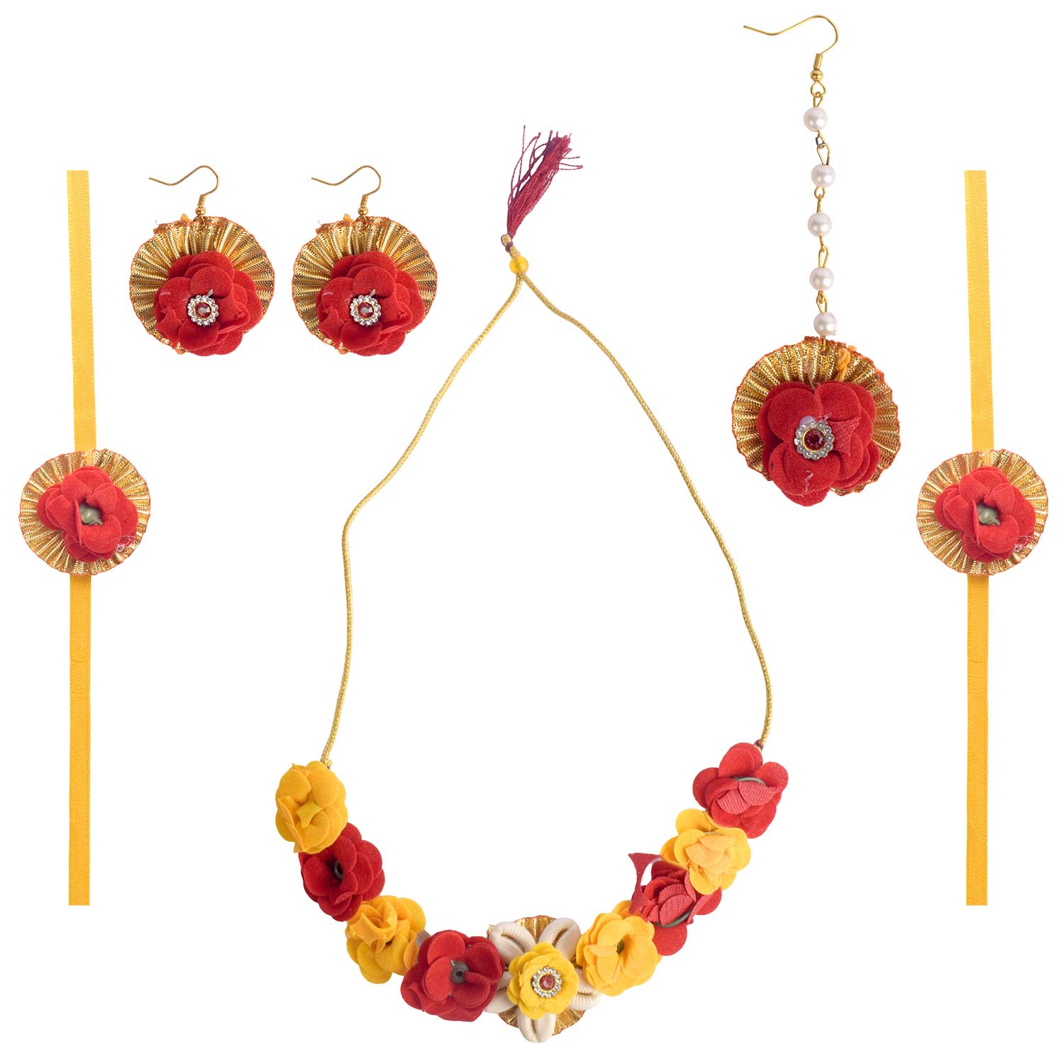 • Components Included: Floral Necklace, Pair of Earrings, Maang Tikka