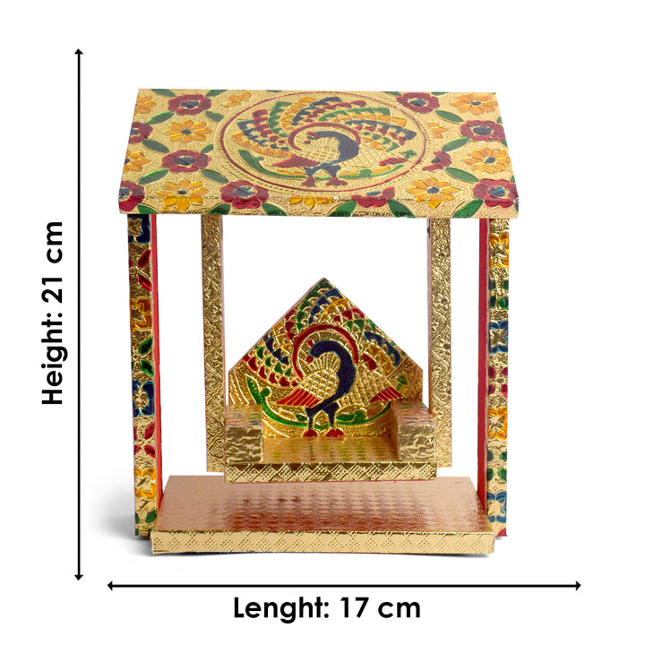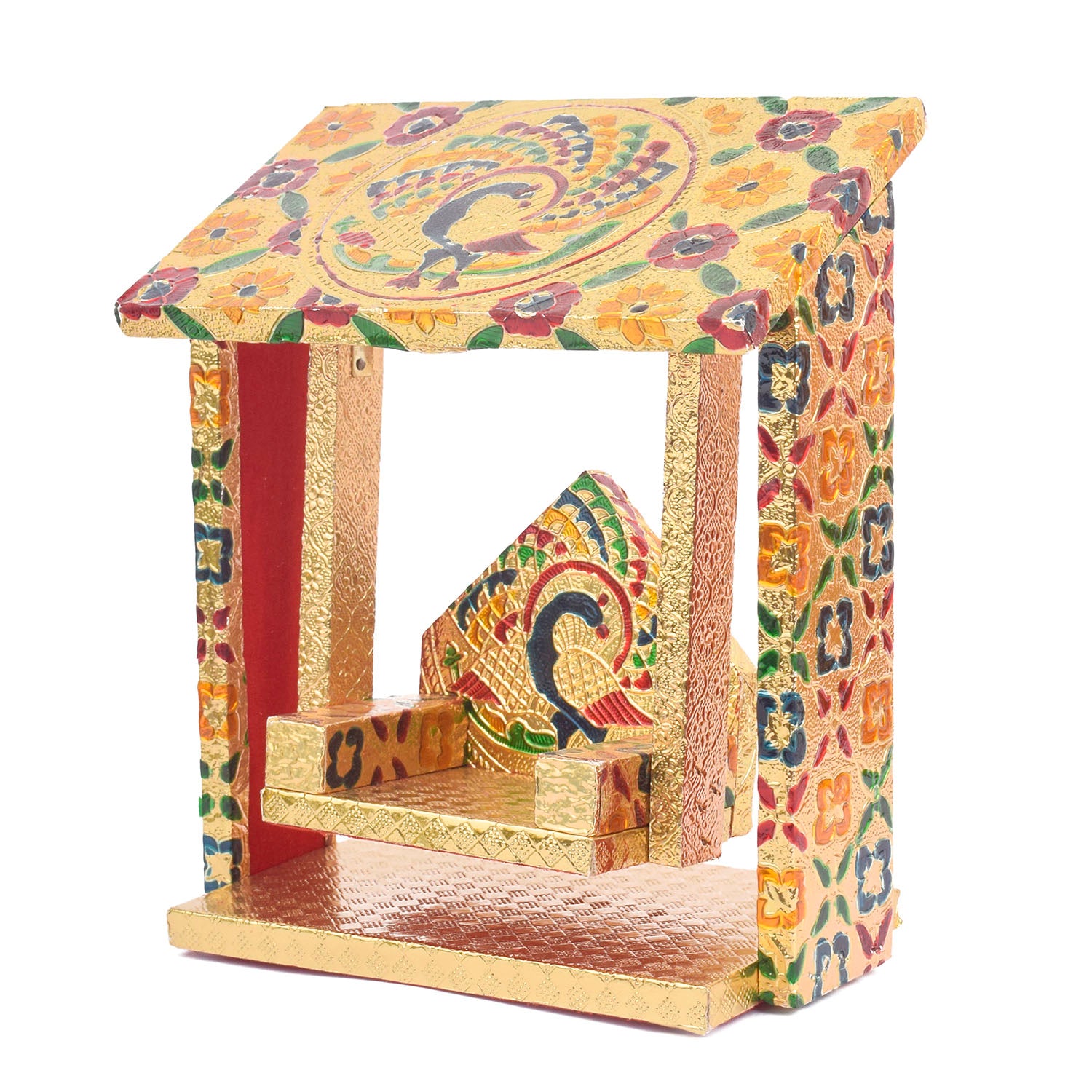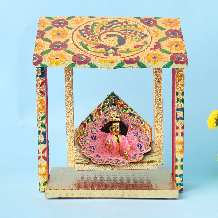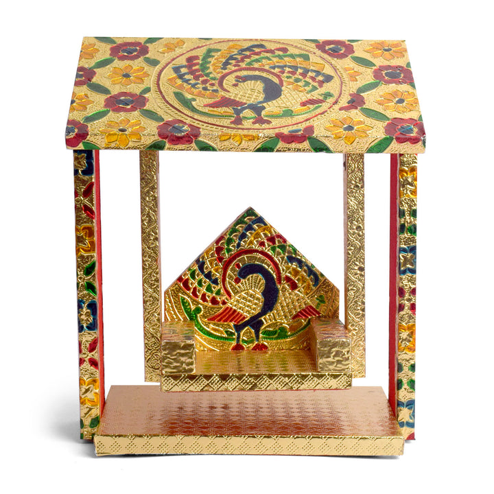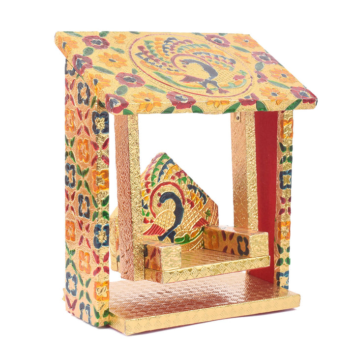Handcrafted by skilled artisans from West Bengal and Uttar Pradesh, the hut-shaped design adds a distinctive and artistic flair to your devotional setup. Whether used in homes, temples, or festive pandals, this jhula becomes a statement of devotion and tradition, infusing sacred energy into your space.