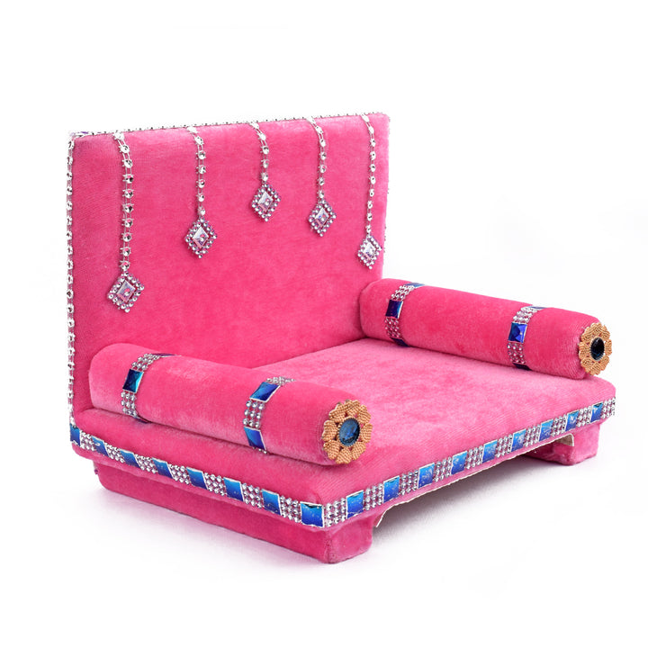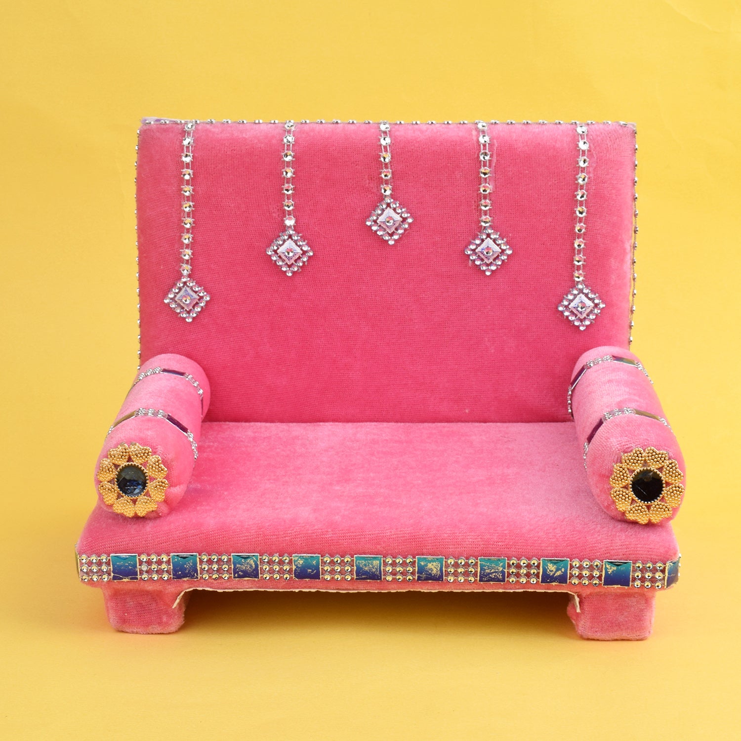As you place your Laddu Gopal on this sacred throne, watch as the velvet embraces the little lord, showering blessings and grace upon your home. Its charming allure and captivating design make it a true centerpiece of devotion, adding a touch of splendor to your worship space.