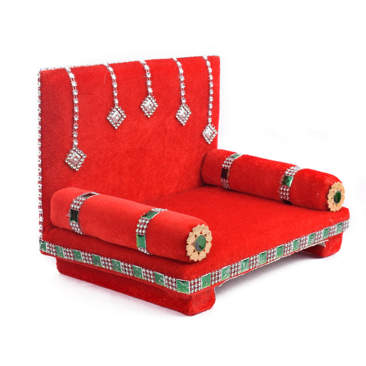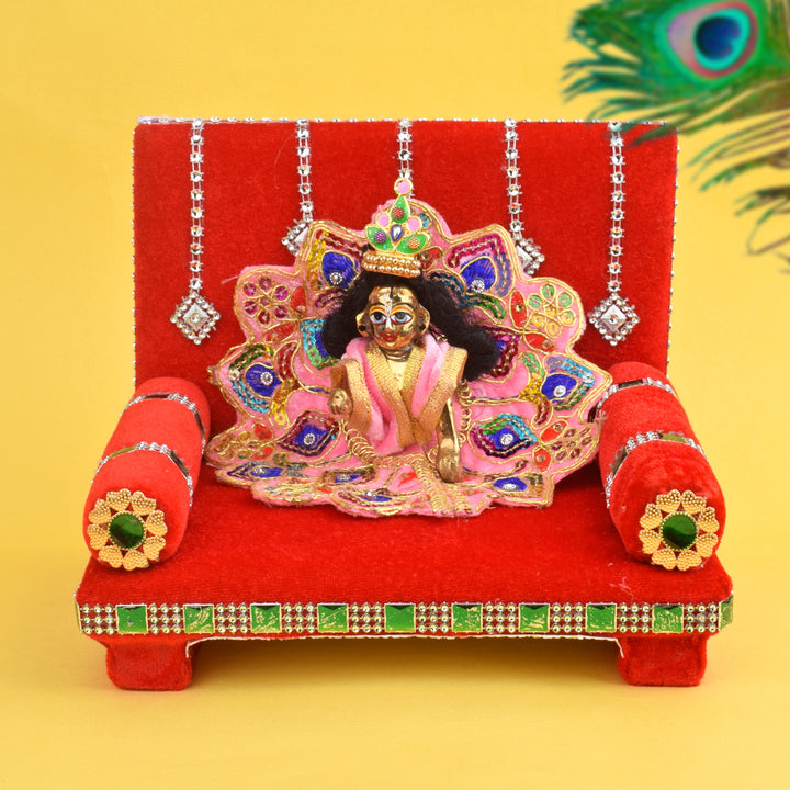 velvet singhasan for laddu gopal | krishna velvet throne | velvet deity singhasan | red velvet pooja singhasan | green kanha ji throne | pink laddu gopal singhasan | large velvet throne for deity | traditional krishna singhasan | pooja room accessories | mandir seat for laddu gopal | handmade velvet pooja furniture