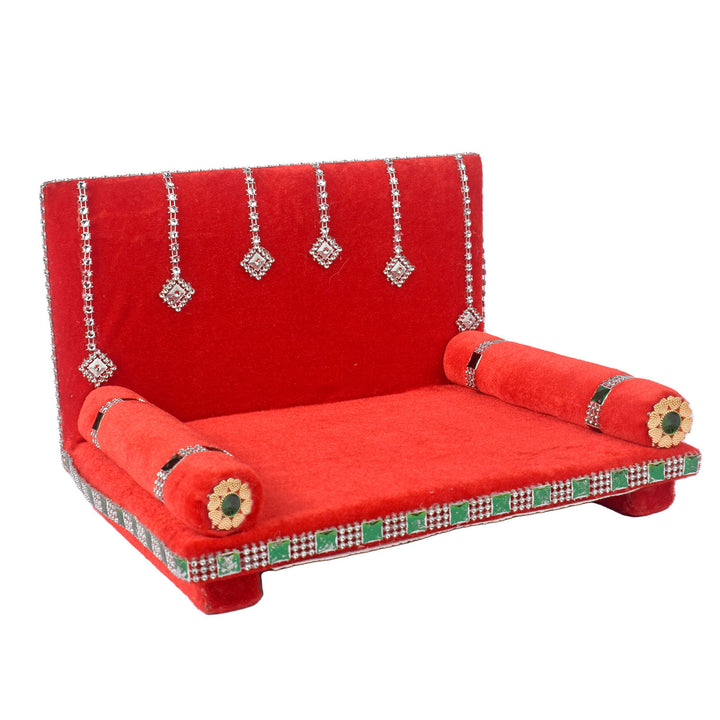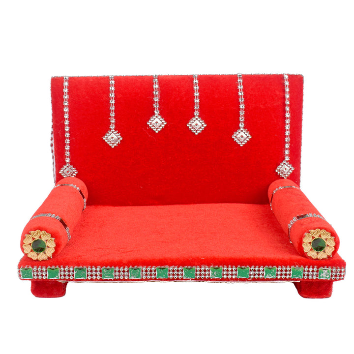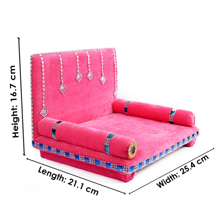 laddu gopal velvet singhasan | red velvet kanha singhasan | pink pooja singhasan for laddu gopal | large krishna singhasan | decorative gopal throne | pooja mandir accessory | velvet deity seat | handcrafted laddu gopal furniture | singhasan for bal gopal | krishna pooja items