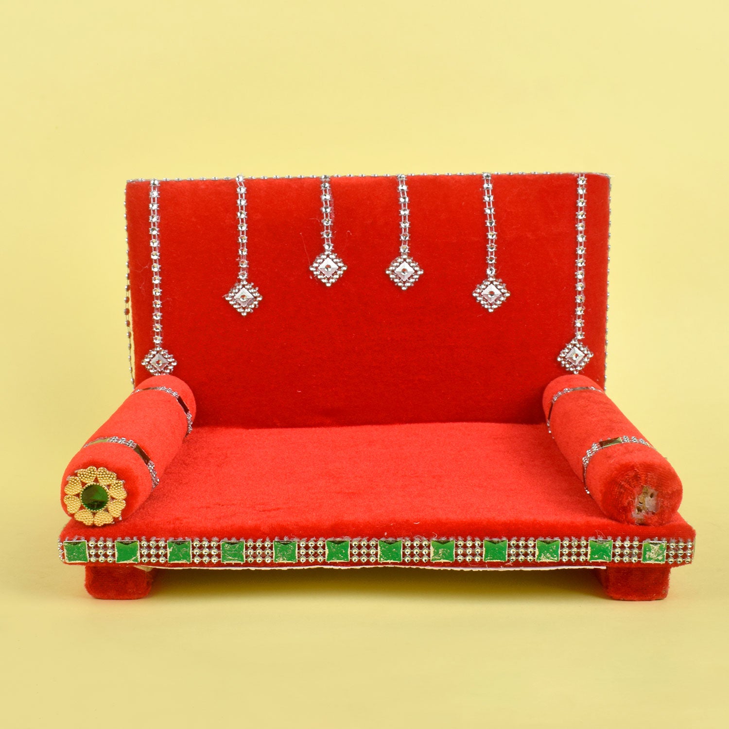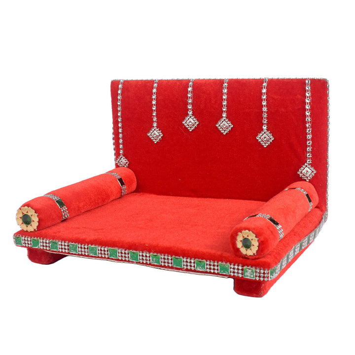 As you place your Laddu Gopal on this sacred throne, watch as the velvet embraces the little lord, showering blessings and grace upon your home. Its charming allure and captivating design make it a true centerpiece of devotion, adding a touch of splendor to your worship space.