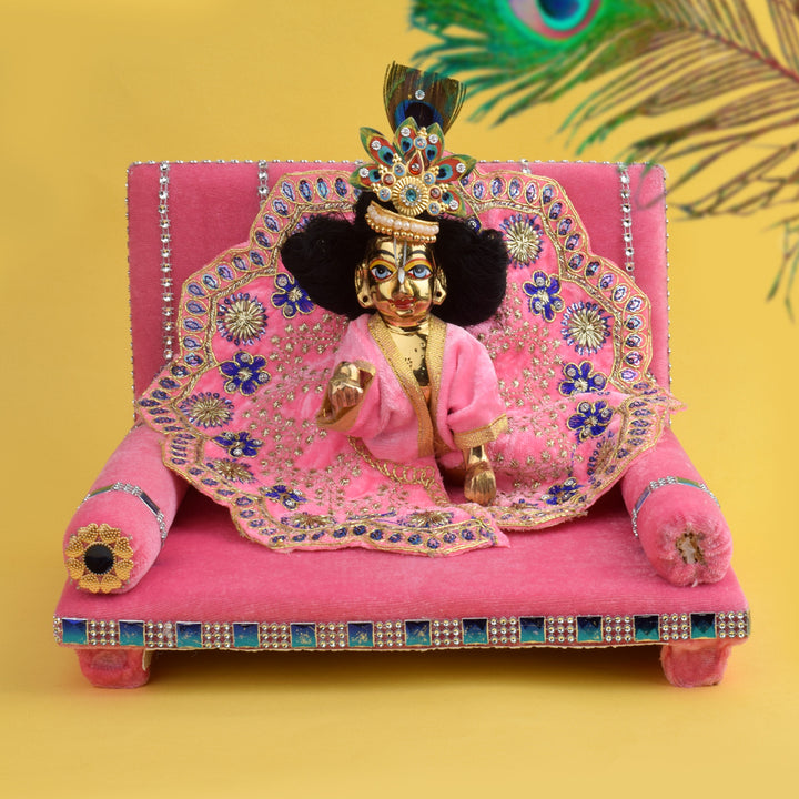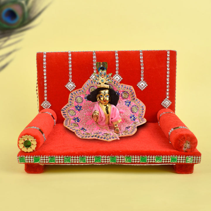 Buy Online | Laddu Gopal Velvet Singhasan Pink Red | satvikstore.in