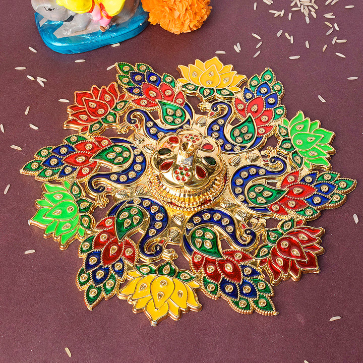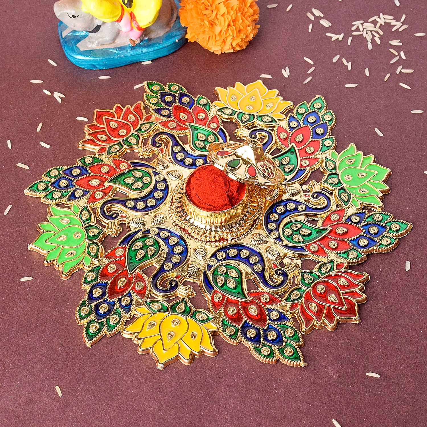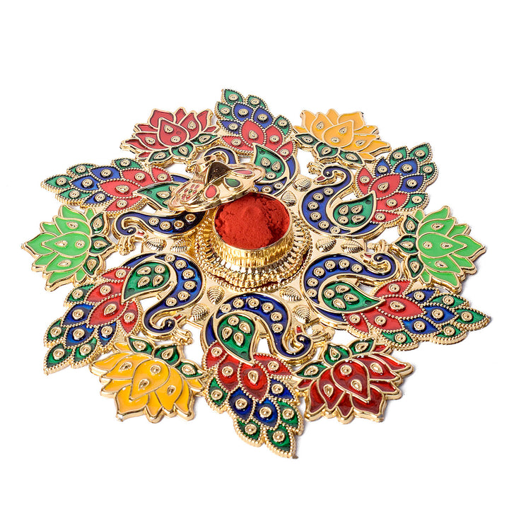 • Item Name: Exquisite Peacock Flower Design Kumkum Container