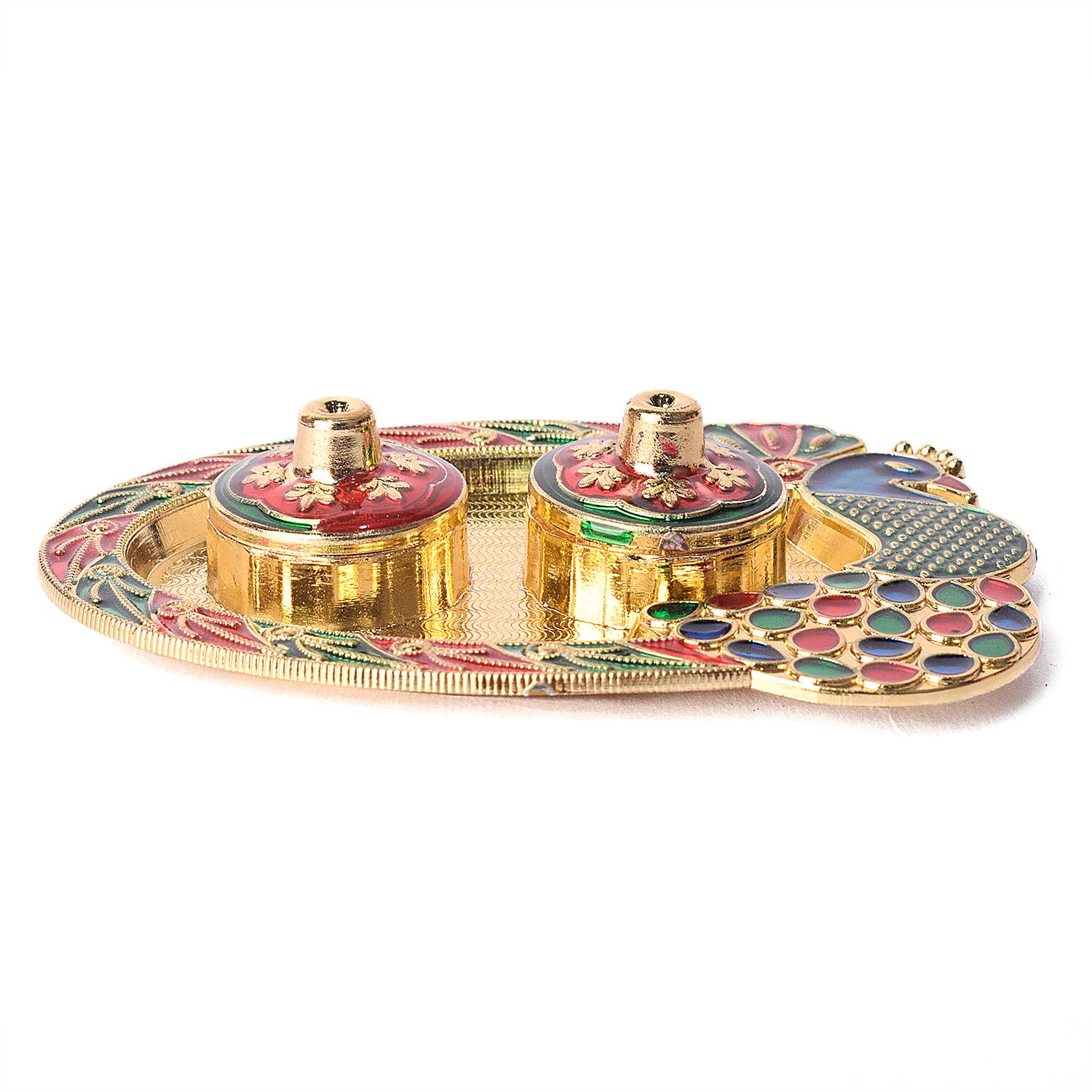 • Item Name: Kumkum Holder Featuring Artistic Peacock