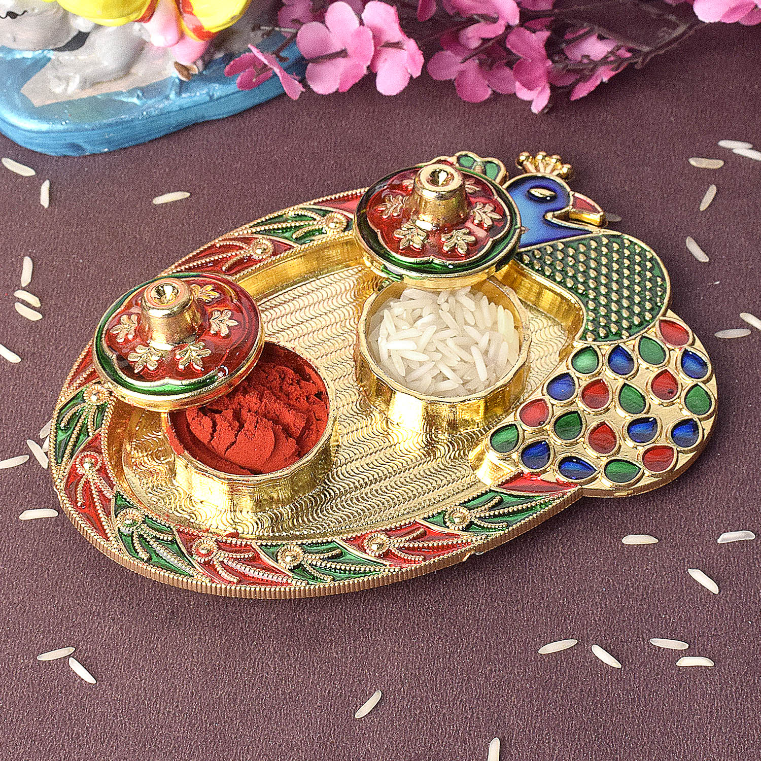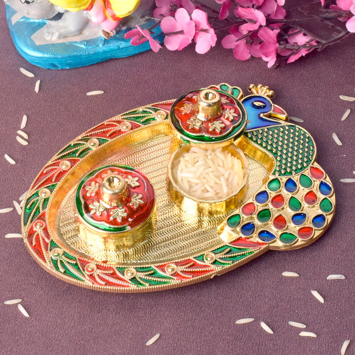 Buy Online Kumkum Holder Featuring Artistic Peacock | Satvikstore.in – satvikstore.in