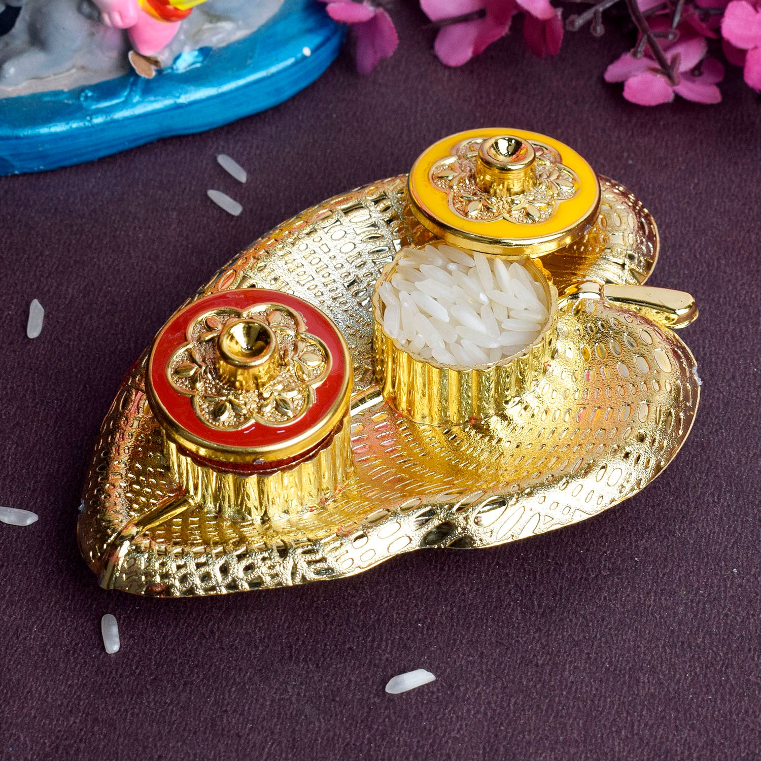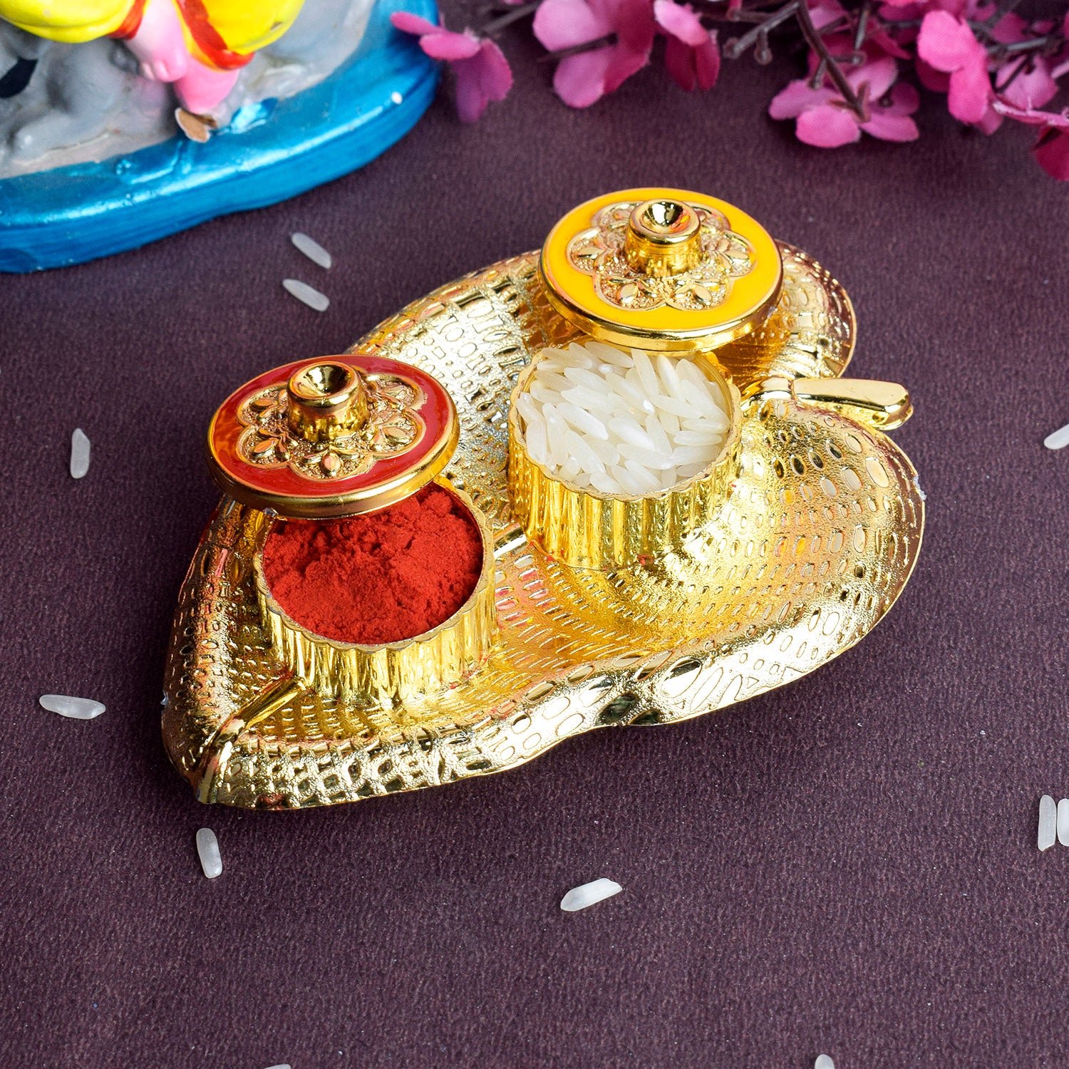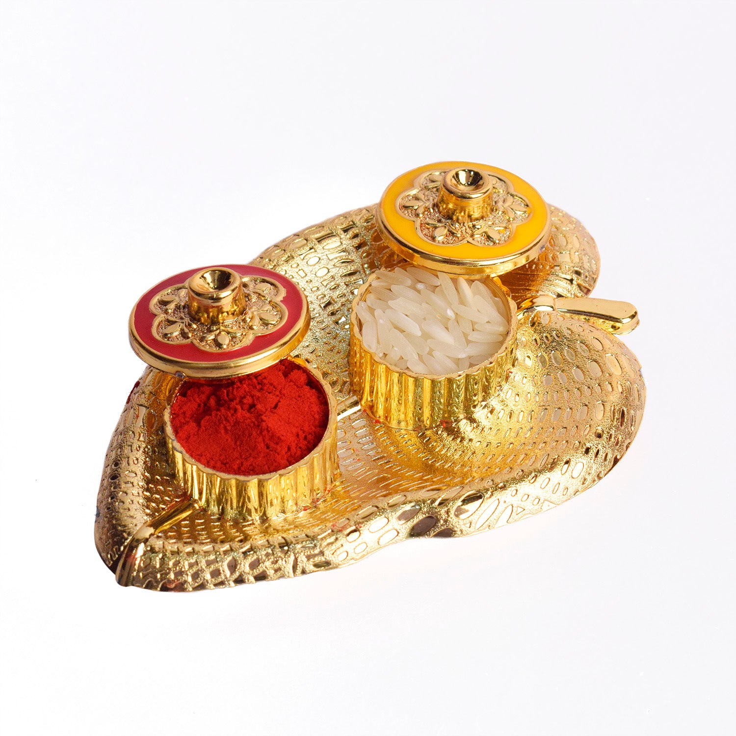 • Item Name: Leaf Shape Kumkum Dispenser for Rituals