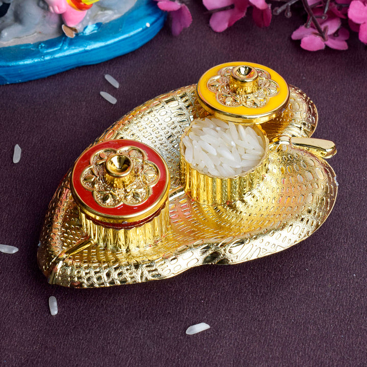 Leaf Shape Kumkum Dispenser for Rituals