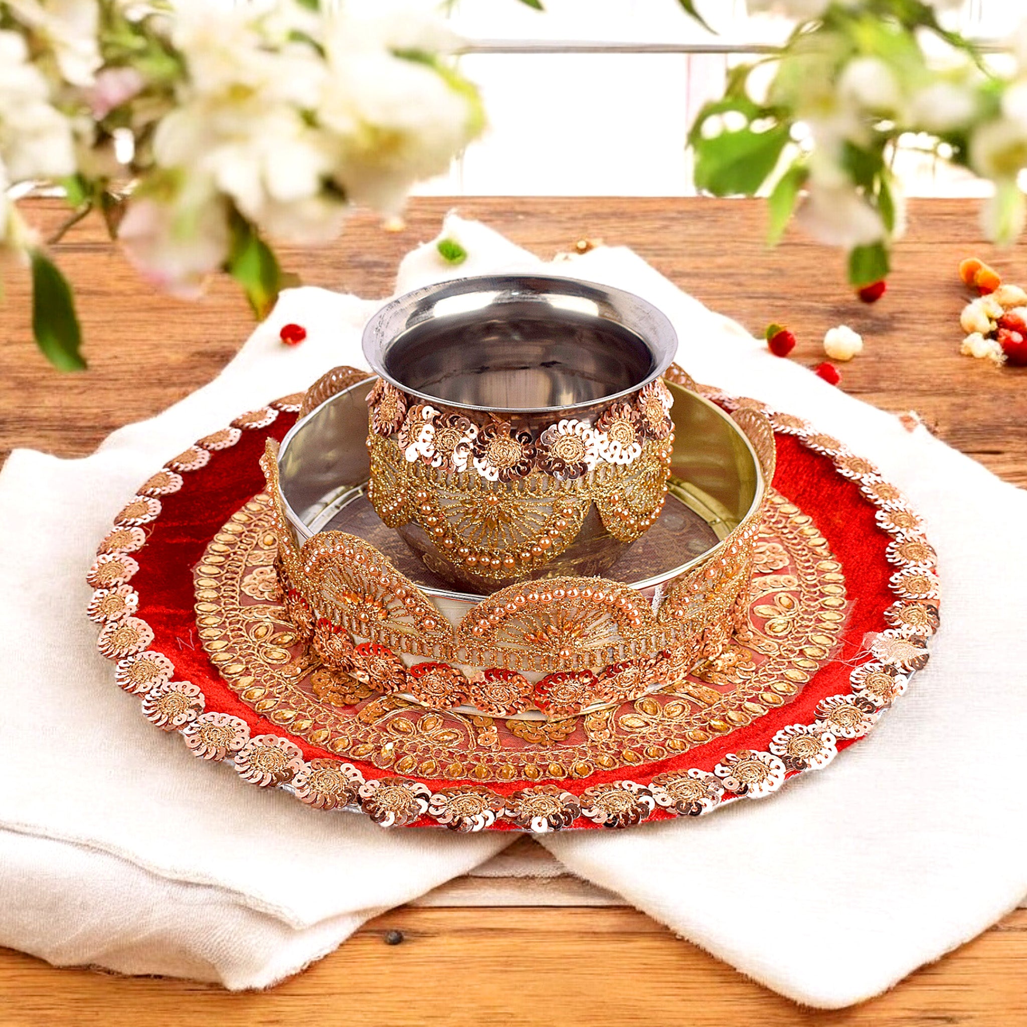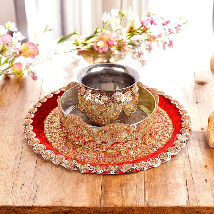 Bright Red Karwa Chauth Thali Set | satvikstore.in