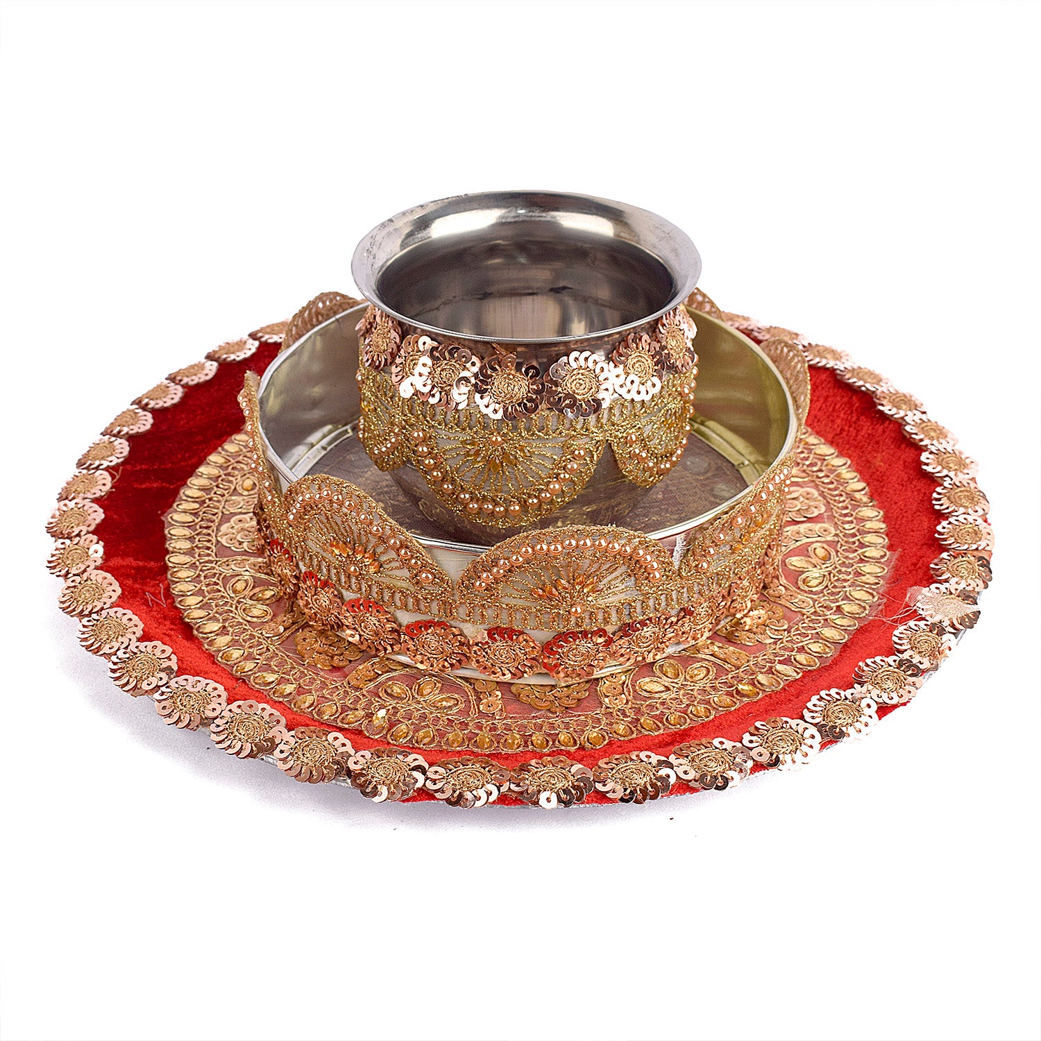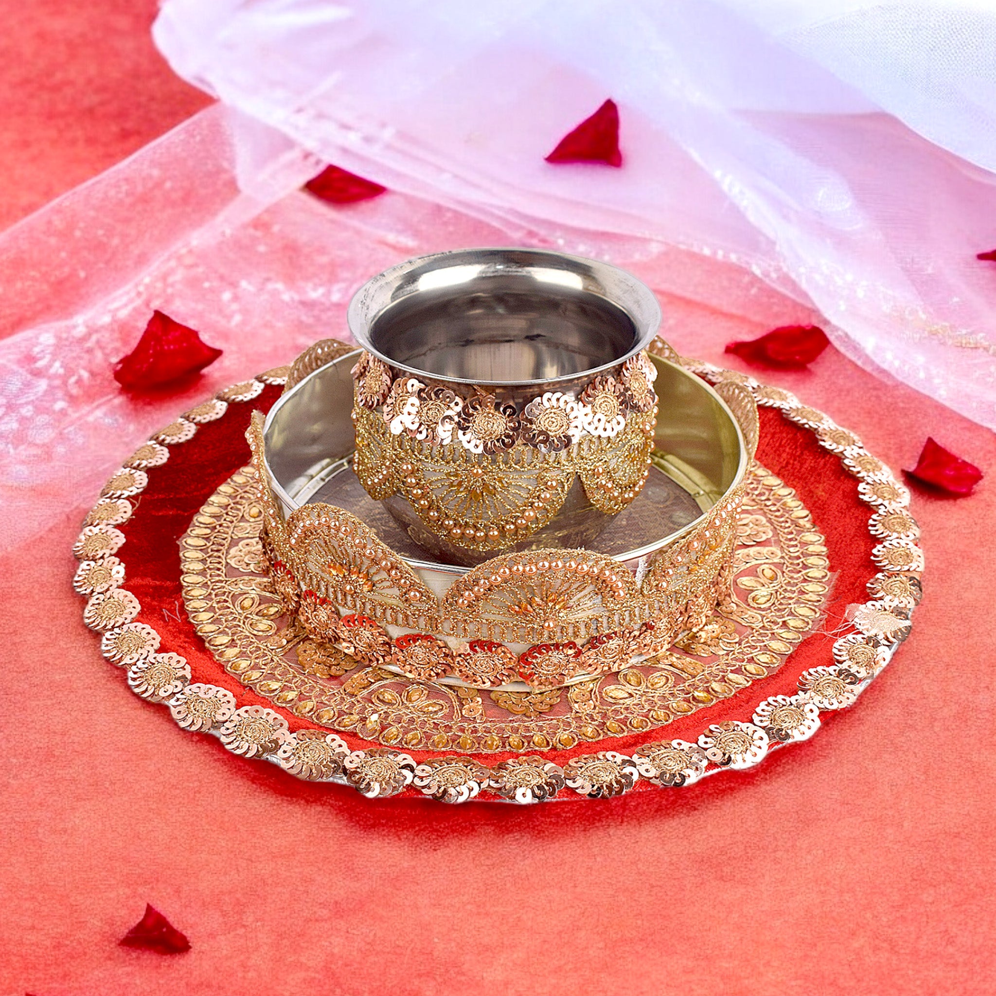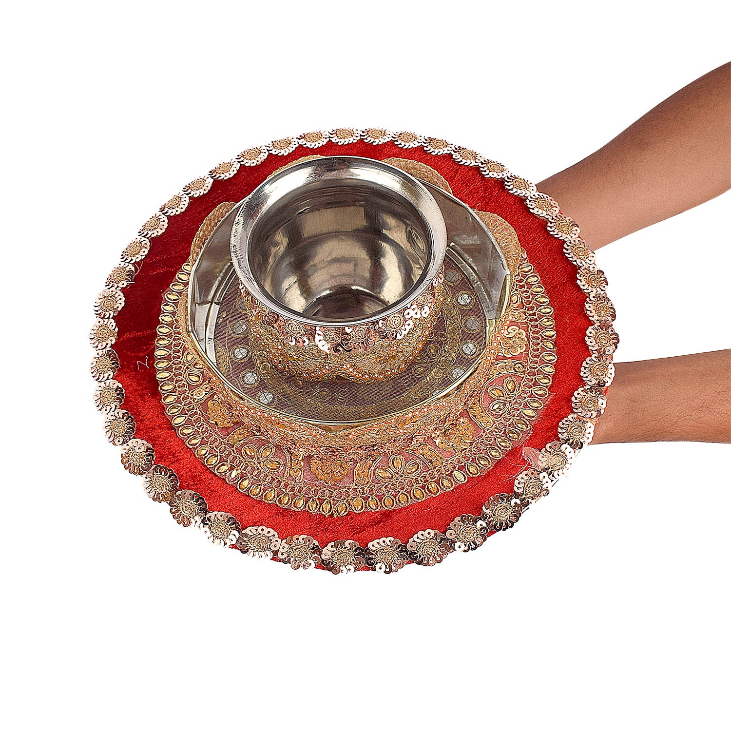 Item Name:Bright Red Karwa Chauth Thali Set