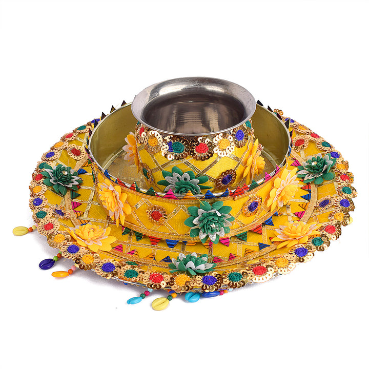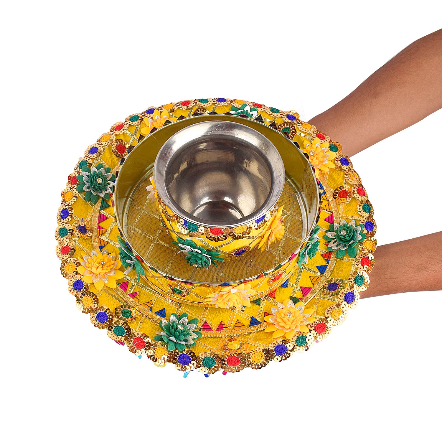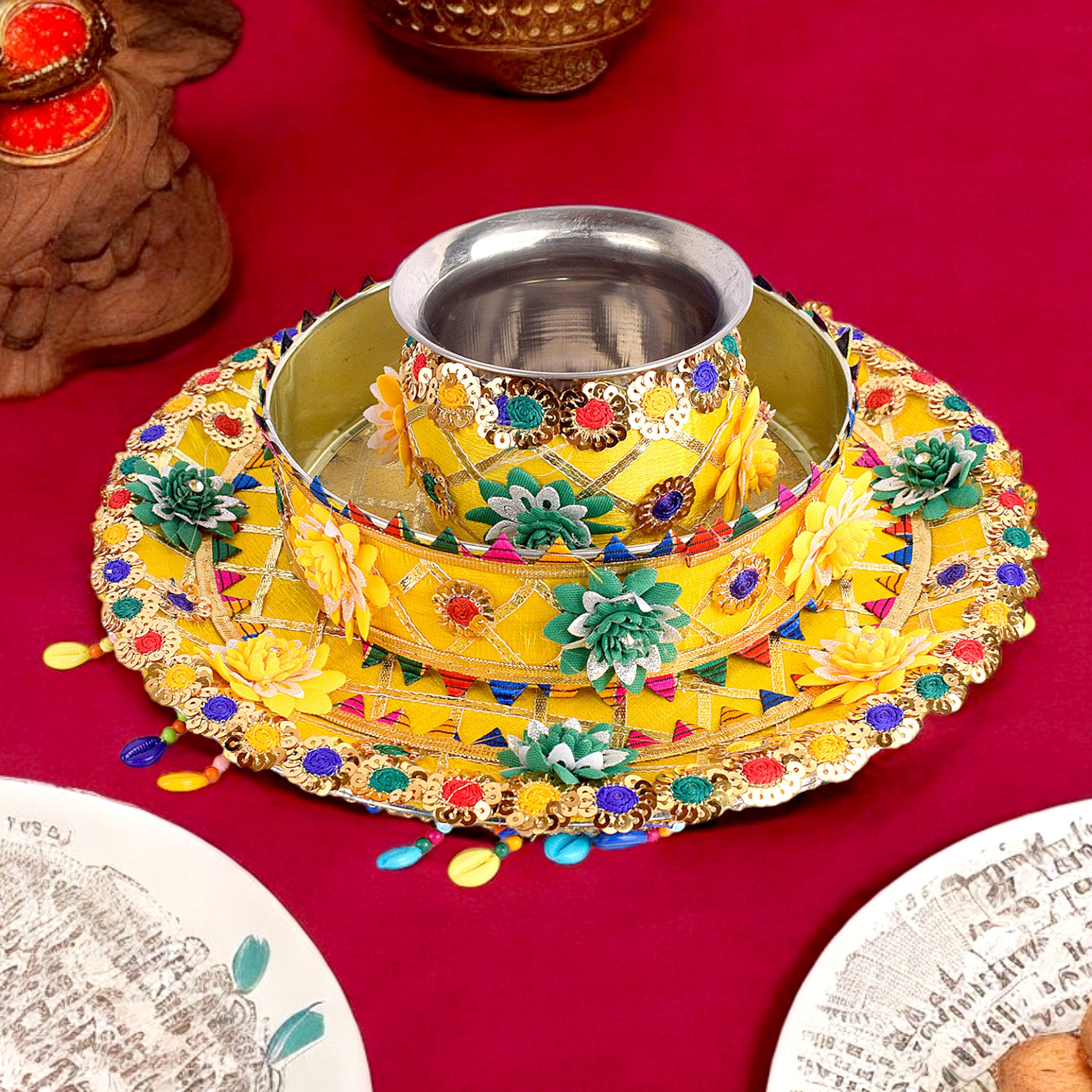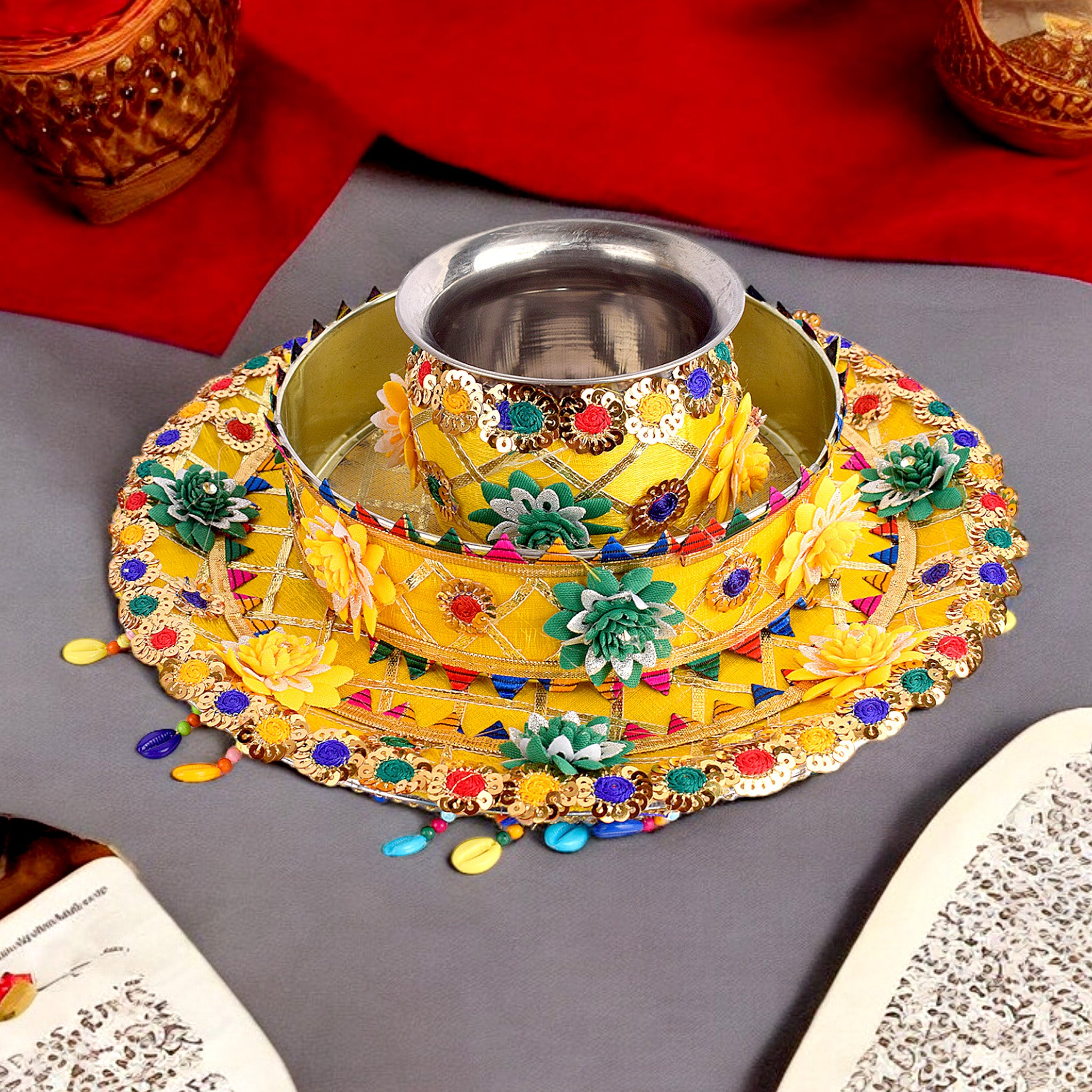 Bright Yellow Karwa Chauth Thali Set|Buy at satvikstore.in