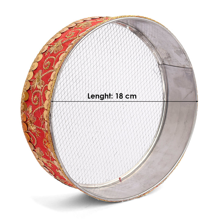 Item Name: Elegant Red Embroidery Karwa Chauth Thali Set -3pc