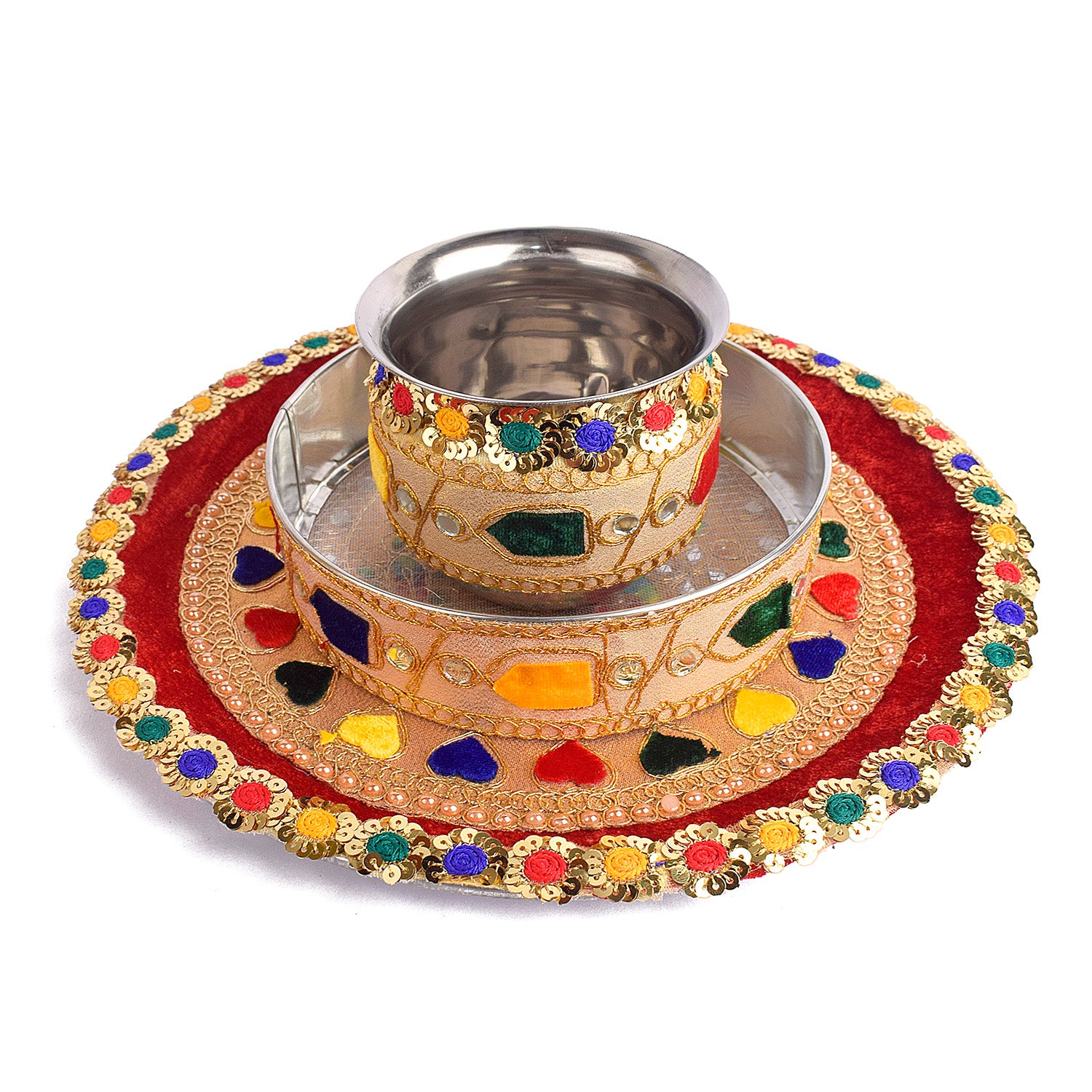 Item Name:Β Radiant Multicolor Karwa Chauth Thali Set- 3pc