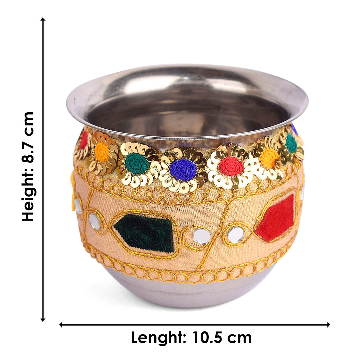 About Product:Β Karwa chauth beautiful Steel thali set includes a thali, Lota, Sieve for traditional and trendy way of karwa chauth pujan for all the married / engaged ladies and girls. Be attractive by using such a decorative piece of thali of puja for your love/ life. This thali can also be used on Diwali/ Deepawali Pujan. Karwa chauth thali set, karwa chauth thali, karwachauth thali platter, karvachauth thali platter, pooja thali set, steel puja thali set, complete karwachauth set, karwachouth set, designer thali set,hanmade thali set, Indian traditional set, karwachauth thali.
