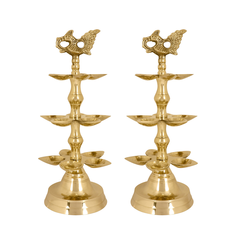 Buy Brass 3 Step Panchmukhi Peacock Kerala Diya Online |Satvikstore.in – satvikstore.in