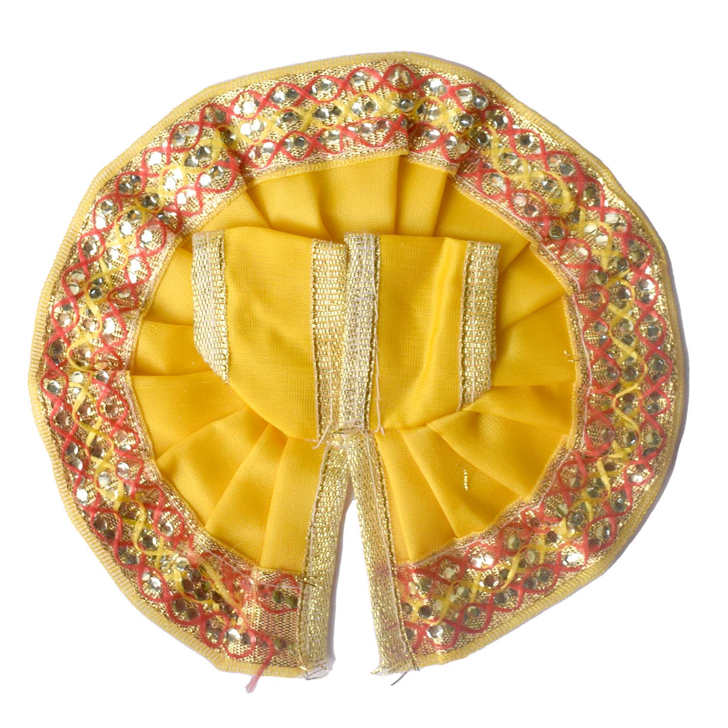 Available in blue, green, pink, orange, yellow, and red, and crafted to fit Laddu Gopal idols in sizes 1 and 2, this exquisite dress effortlessly combines tradition with a festive charm, making your deity’s appearance truly divine.
