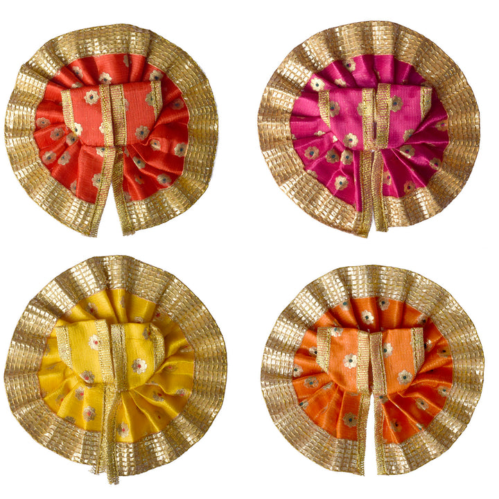 Infuse your Laddu Gopal’s wardrobe with a burst of color and joy with this Vibrant Floral Printed Dress. Beautifully designed in shades of orange, pink, yellow, and red, this delightful outfit radiates lively elegance. Available in sizes 0, 1, and 2, it features striking floral prints that add festive charm and divine beauty to your deity’s appearance. Perfect for Janmashtami, daily darshan, or special pooja occasions, this dress ensures both comfort and stunning visual appeal for your beloved Krishna.