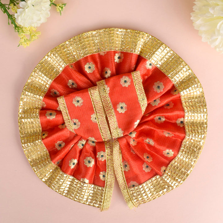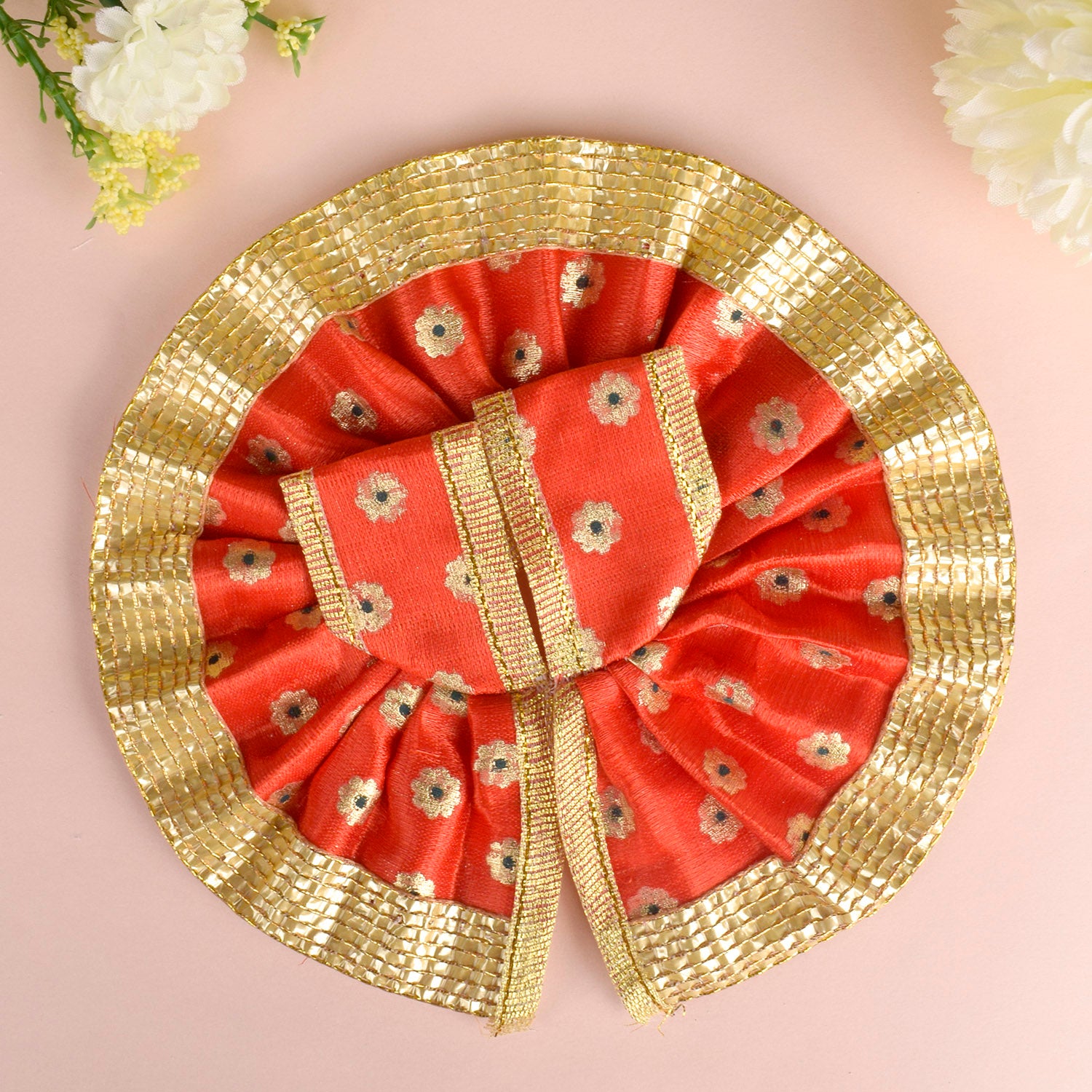 vibrant laddu gopal dress | floral printed gopal attire | colorful krishna ji poshak | orange pink yellow red deity dress | laddu gopal cotton outfit | festive kanha ji dress | traditional laddu gopal poshak | pooja attire for bal gopal | printed deity clothes | laddu gopal poshak set | satvikstore.in