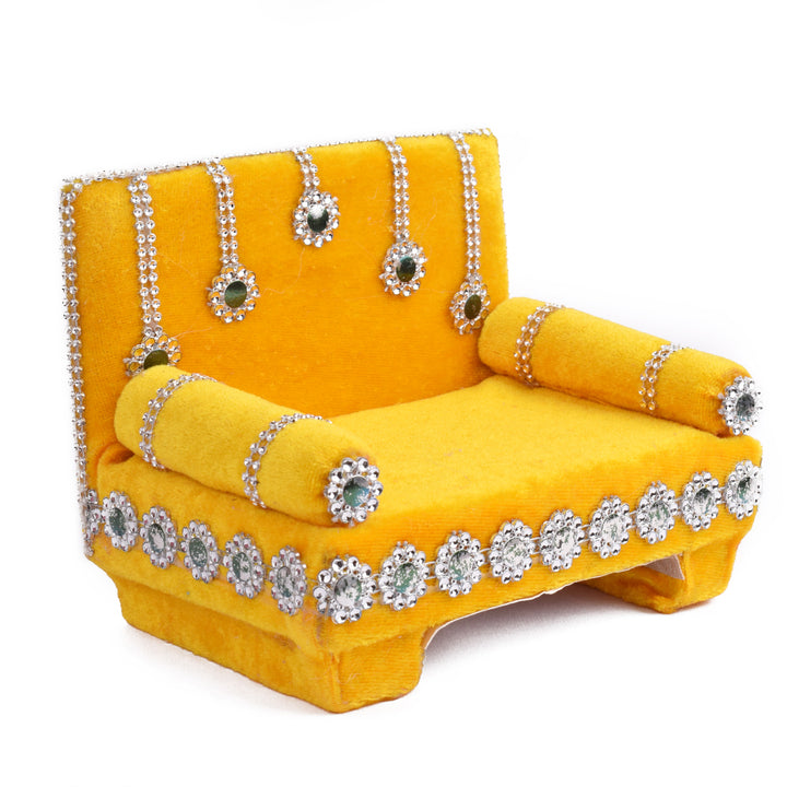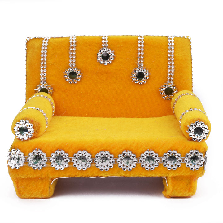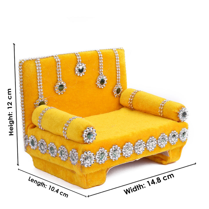 • Item Name: Pretty Yellow Laddu Gopal's Divine Velvet Singhasan