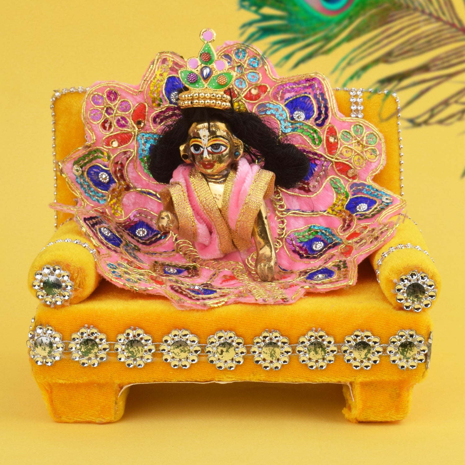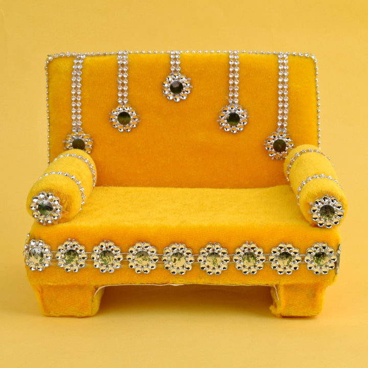 Pretty Yellow Laddu Gopal's Divine Velvet Singhasan | Satvikstore.in – satvikstore.in