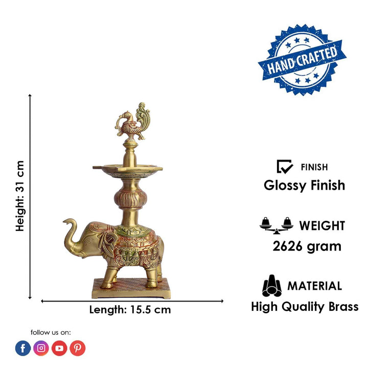 • Product Name: 12.2 Inch Brass Elephant Diya Stand for Pooja Home Temple Décor