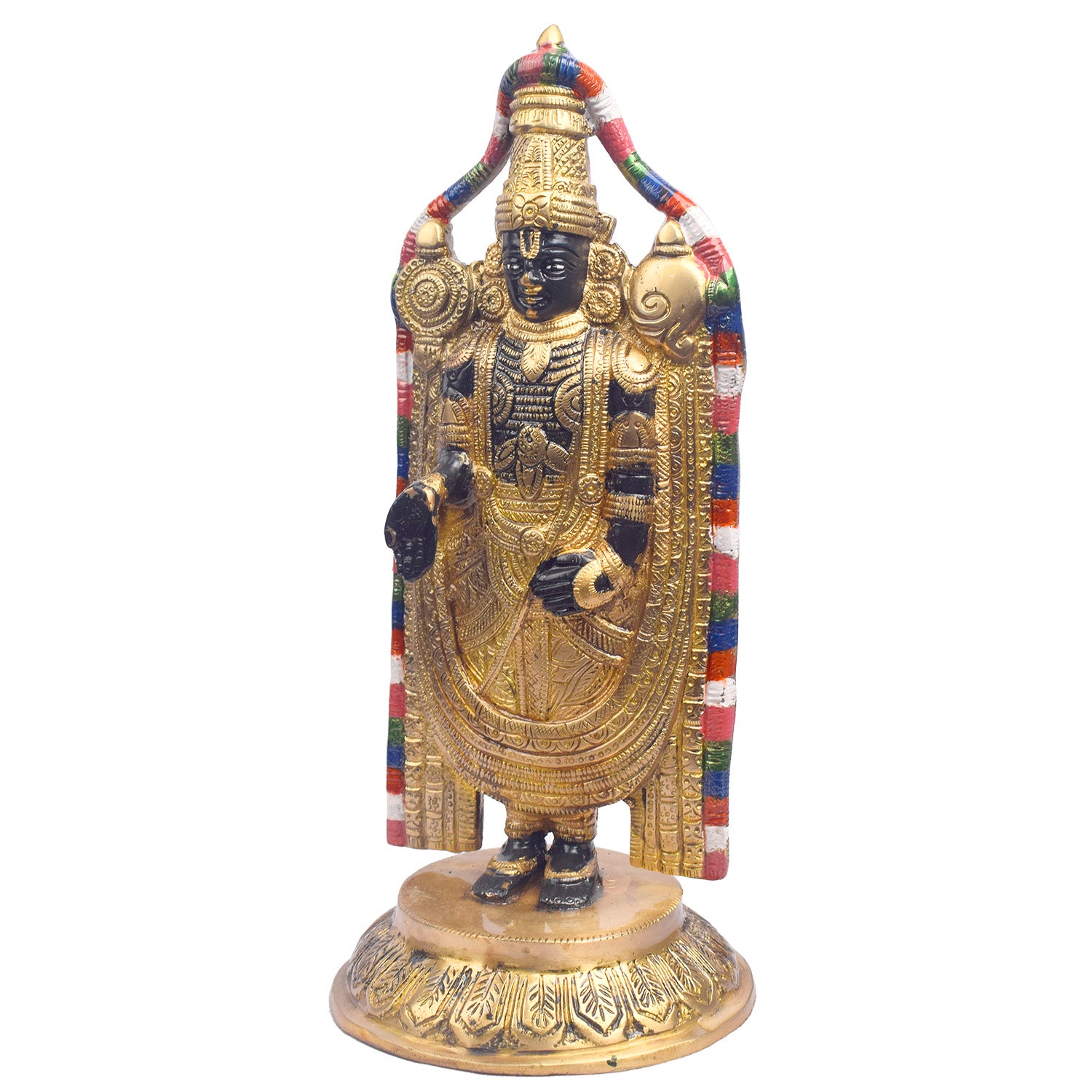 About Product: This 12.2-inch Tirupati Balaji statue beautifully captures the divine presence of Lord Venkateshwara, the beloved deity of the Tirupati temple. Crafted with exquisite attention to detail, the statue radiates grace, serenity, and spiritual blessings. Known for his power to bestow prosperity, health, and peace, Lord Balaji's idol brings a sense of calm and positive energy to any space. Perfect for your home, temple, or prayer room, this statue serves as a constant reminder of devotion and divine grace, inviting Lord Venkateshwara's blessings into your life.