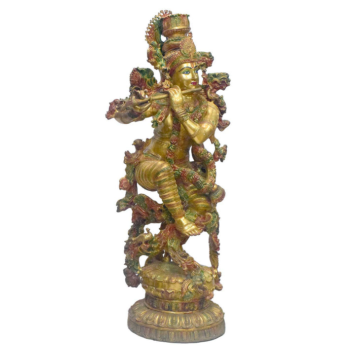 43 Inch Large Brass Krishna Flute Player Statue - Tribhanga Pose