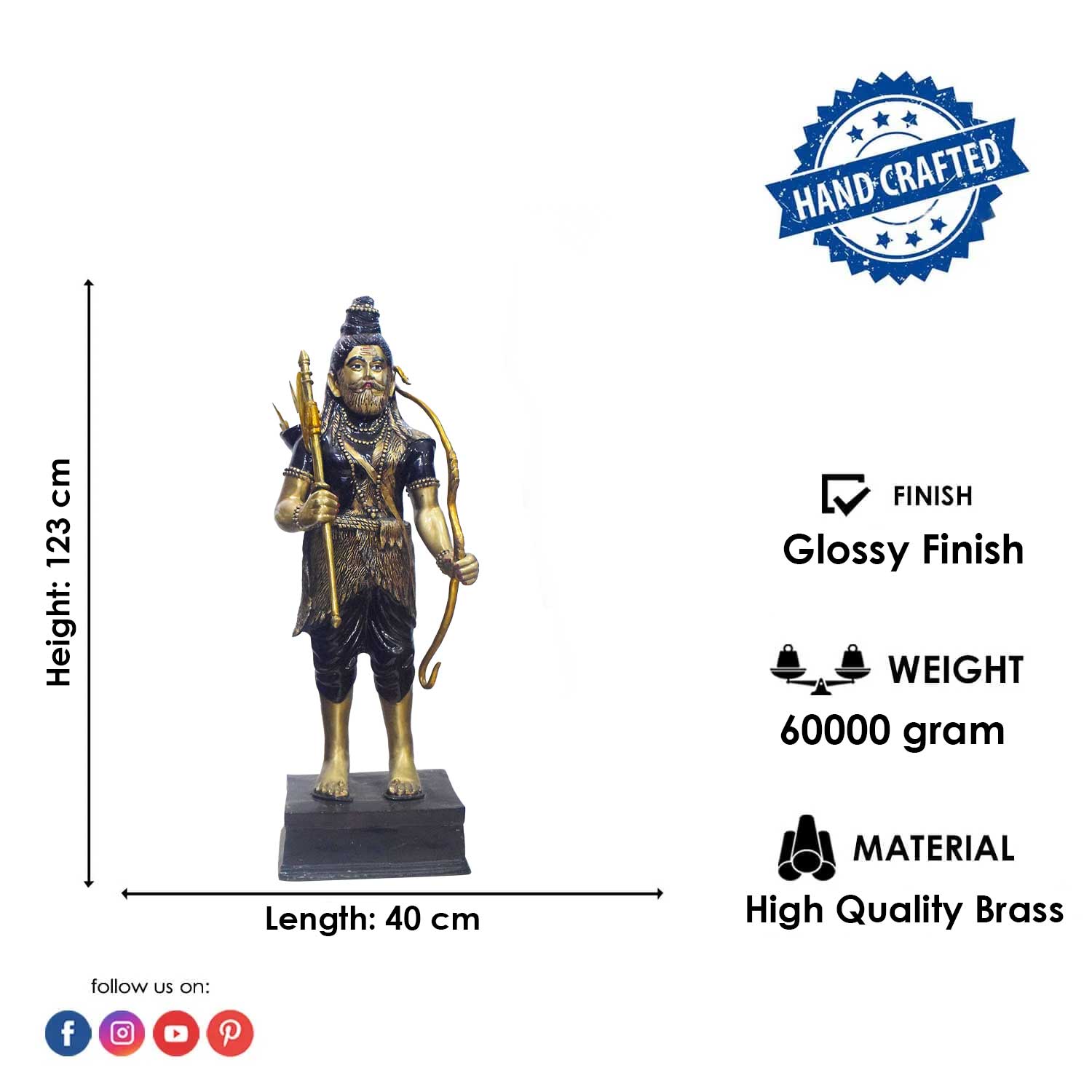 • Material: The Large Brass Lord Parashurama Statue with Bow & Axee is made from Pure Brass Virgin Material.