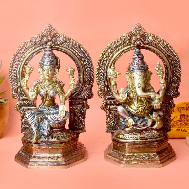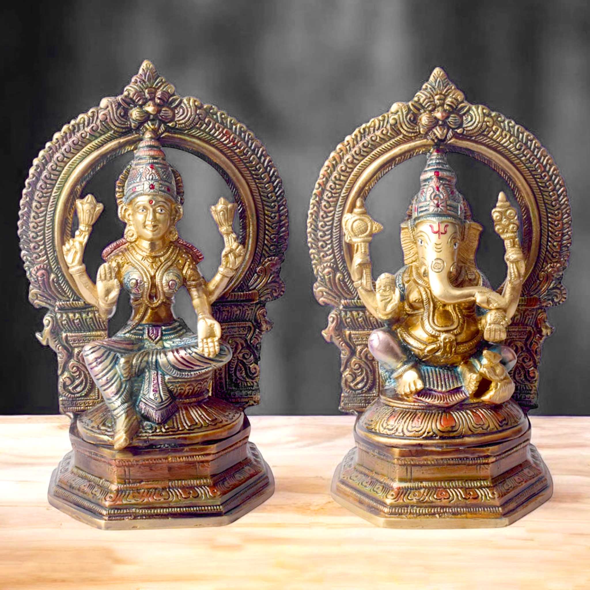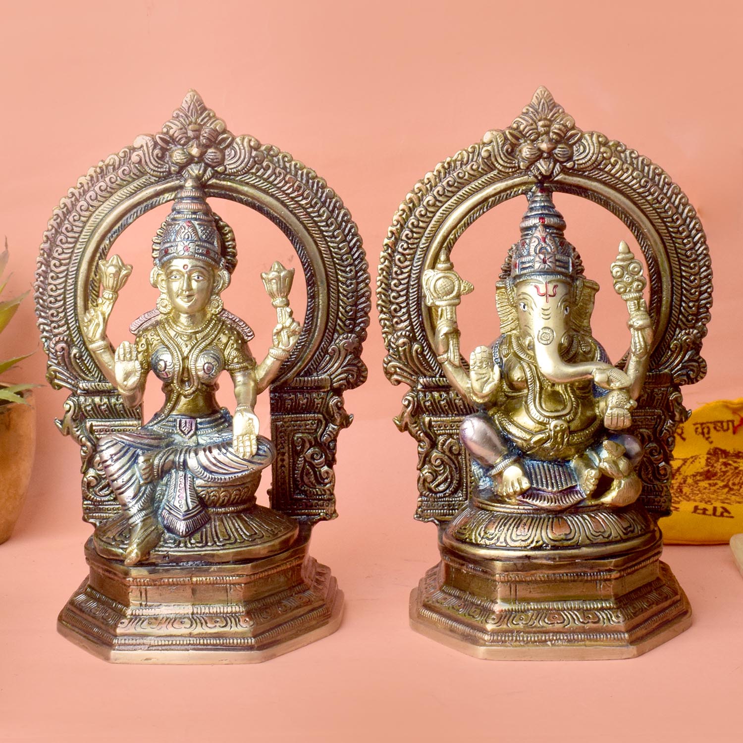 Buy Online | Gorgeous Brass Lakshmi Ganesha Pair Idol | Satvikstore.in – satvikstore.in