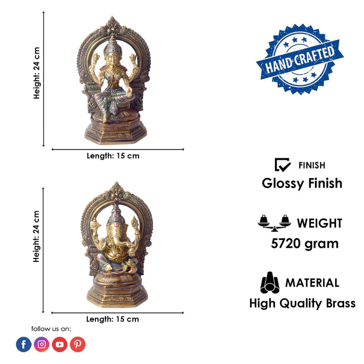 • Item Name: 9.4 Inch Elegant Handcrafted Brass Lakshmi Ganesha Idol