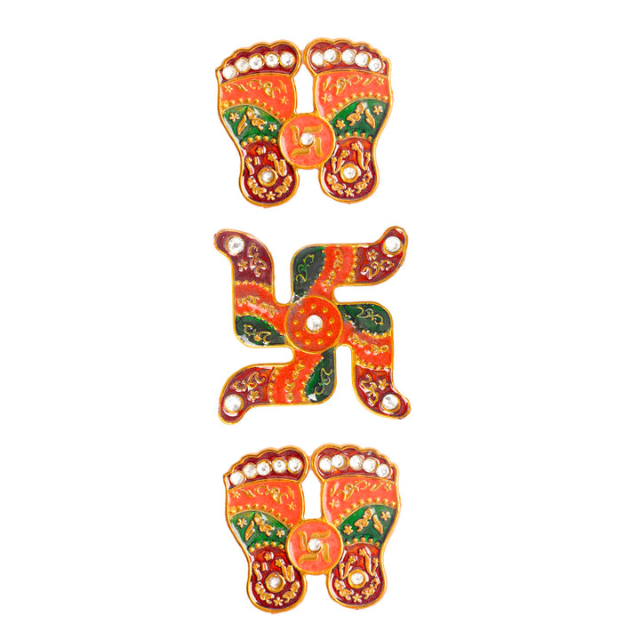 Shubh Labh Leaf With Swastik Wooden StickerPackage Contains:Β 1 Pair of Charan Paduka and 1 Swastik StickerΒ