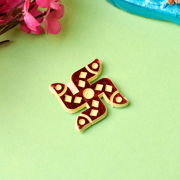 About Product: The Swastik is characterized by a distinctive cross with arms bent at right angles, forming a square. Typically, the arms are bent either clockwise or counterclockwise. The symbol is often geometrically precise, with each arm of the cross extending equally from a central point.