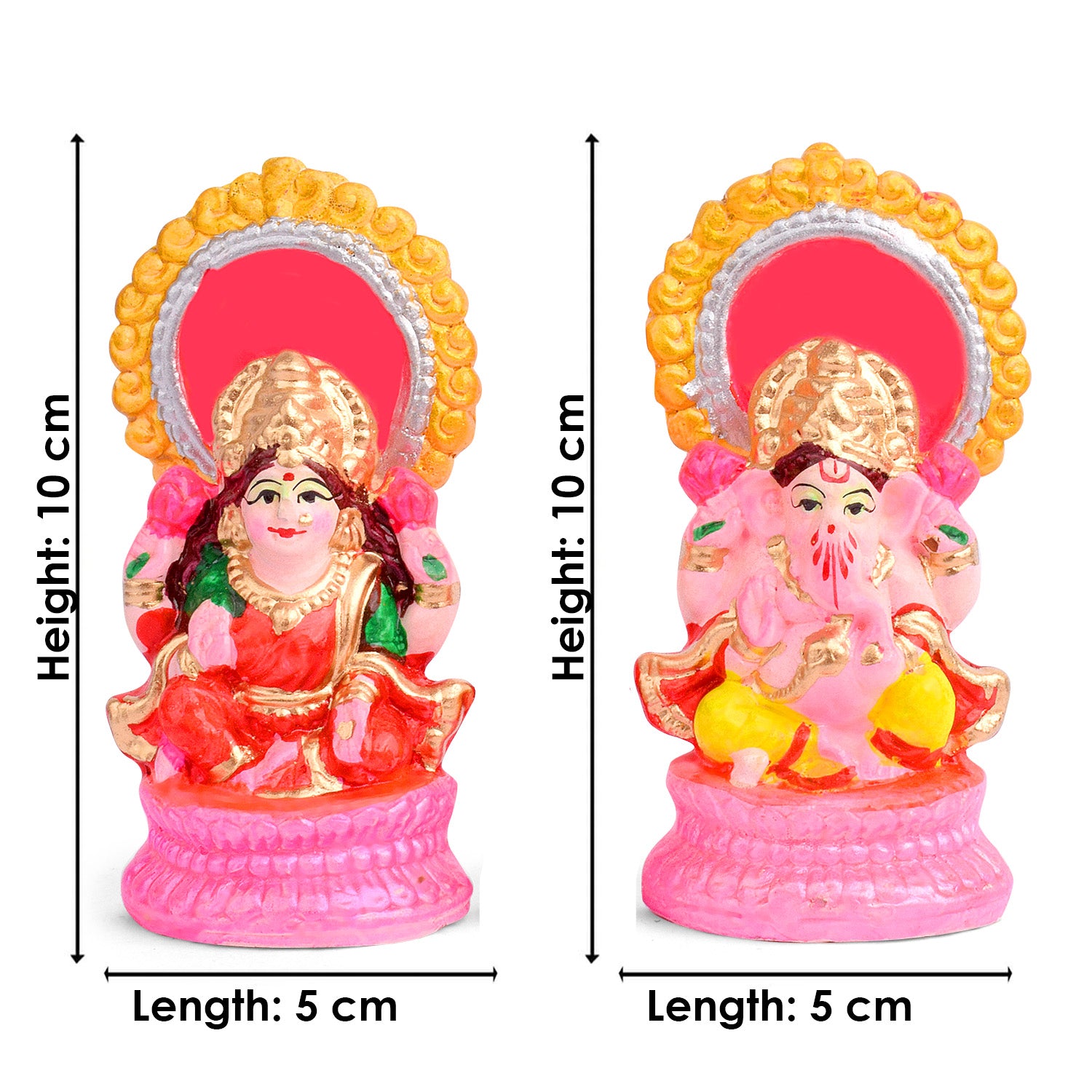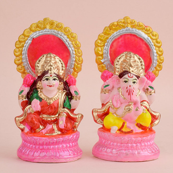 • Product Details: Material: Clay Dimensions: Ganesha: Height: 10cm, Length: 5cm, Width: 3.8cm, Laxmi: Height: 10cm, Length: 5cm, Width: 3.8cm, Total weight: 195gram, Finish Type: Glossy.